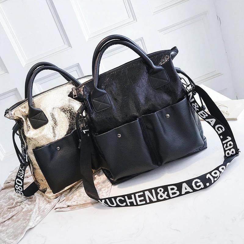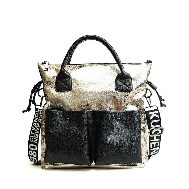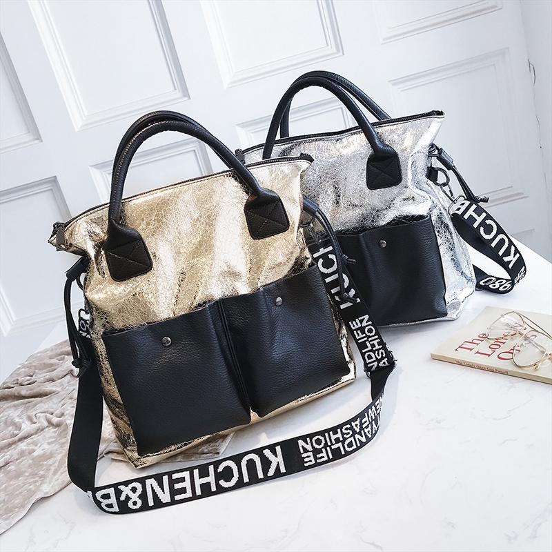 Large casual bags can be cool too! Like this metallic crack designed handbag! This bag could fit and will keep your phone, tablet, journal, wallet, and cosmetic bags organized!