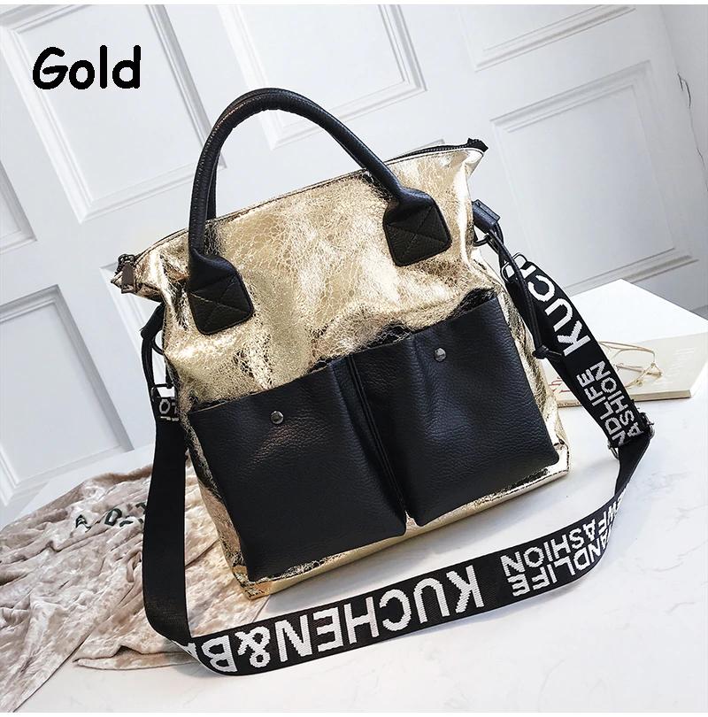Metallic Crack Designed Hand Bag
