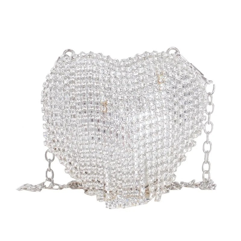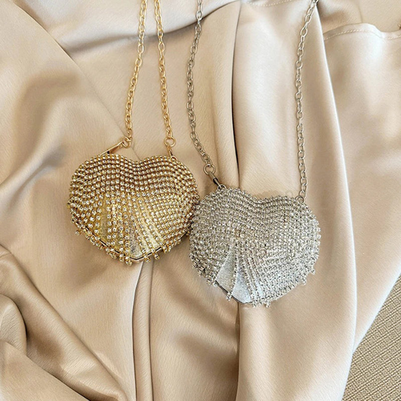 Make every night sparkle with our Women's Mini Heart-shaped Rhinestone Tassel Evening Bag!