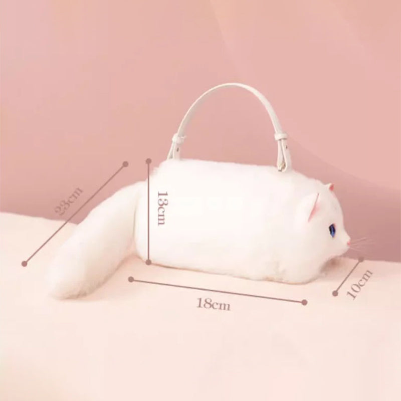 Winter Plush Cute Realistic Cat One-shoulder Design Handbag