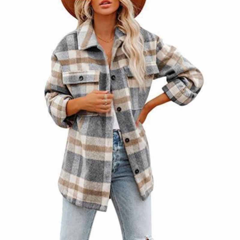 Classic Plaid Button-Down Long Sleeve Shirts for Women