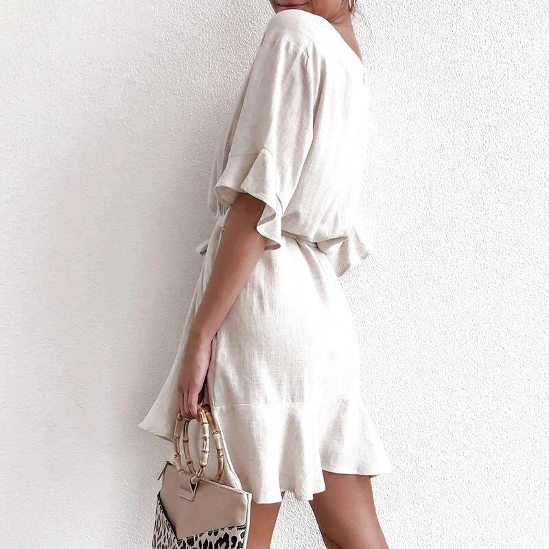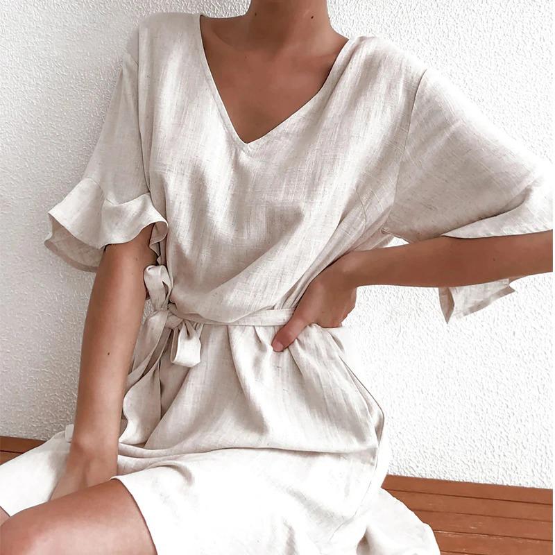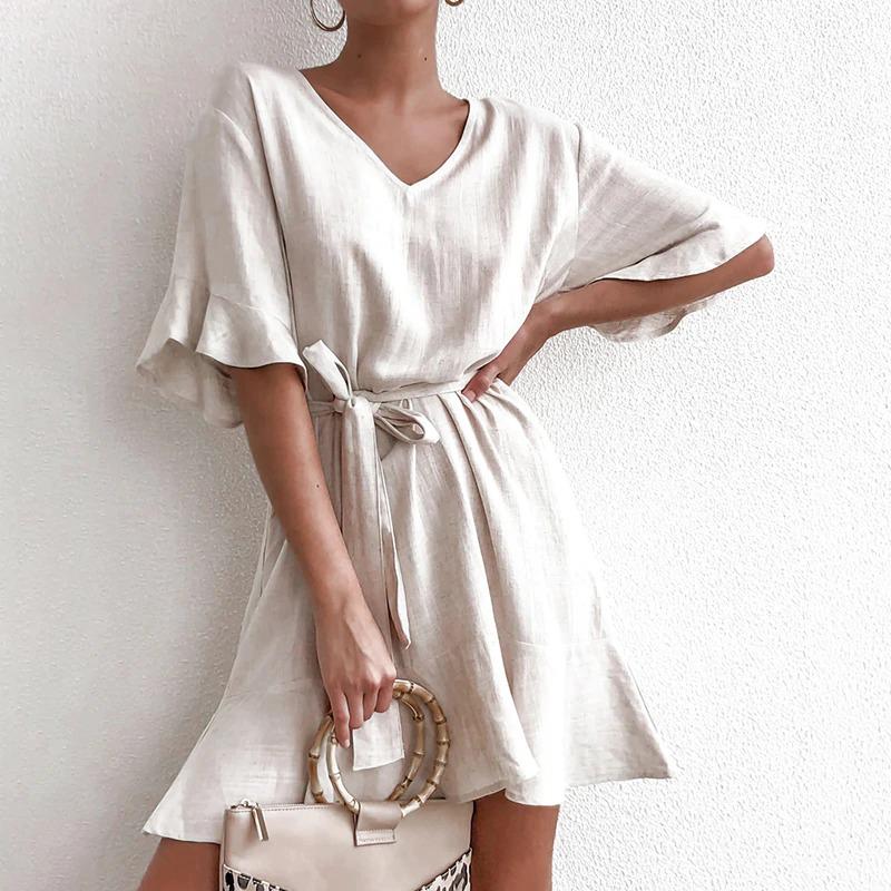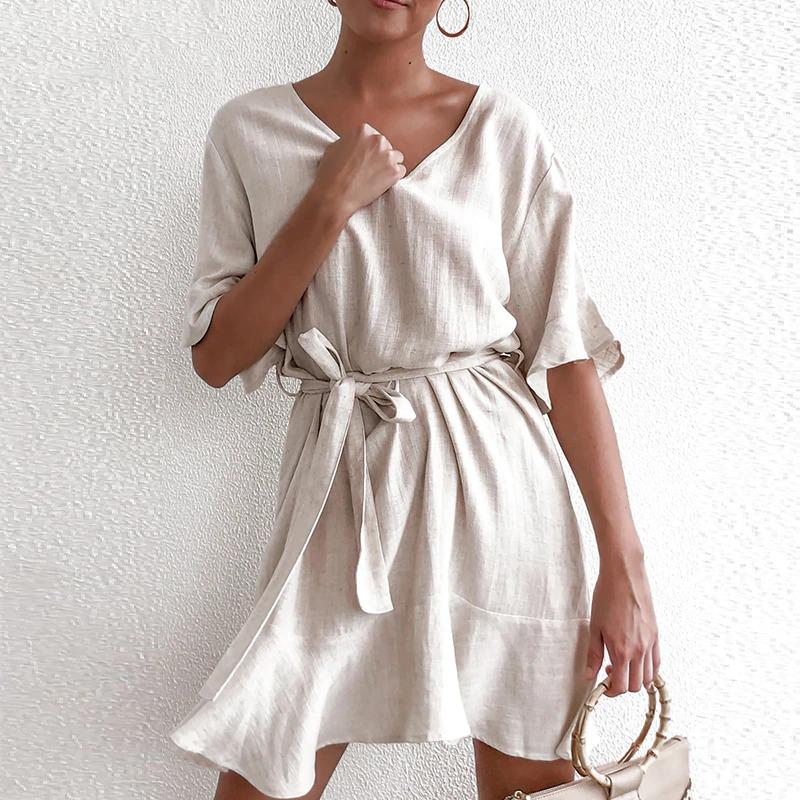 This Casual Short Sleeve Waist Tie Summer Dress gives you a comfy and classy feeling! The V-neckline also adds an alluring look that will be great for summer!