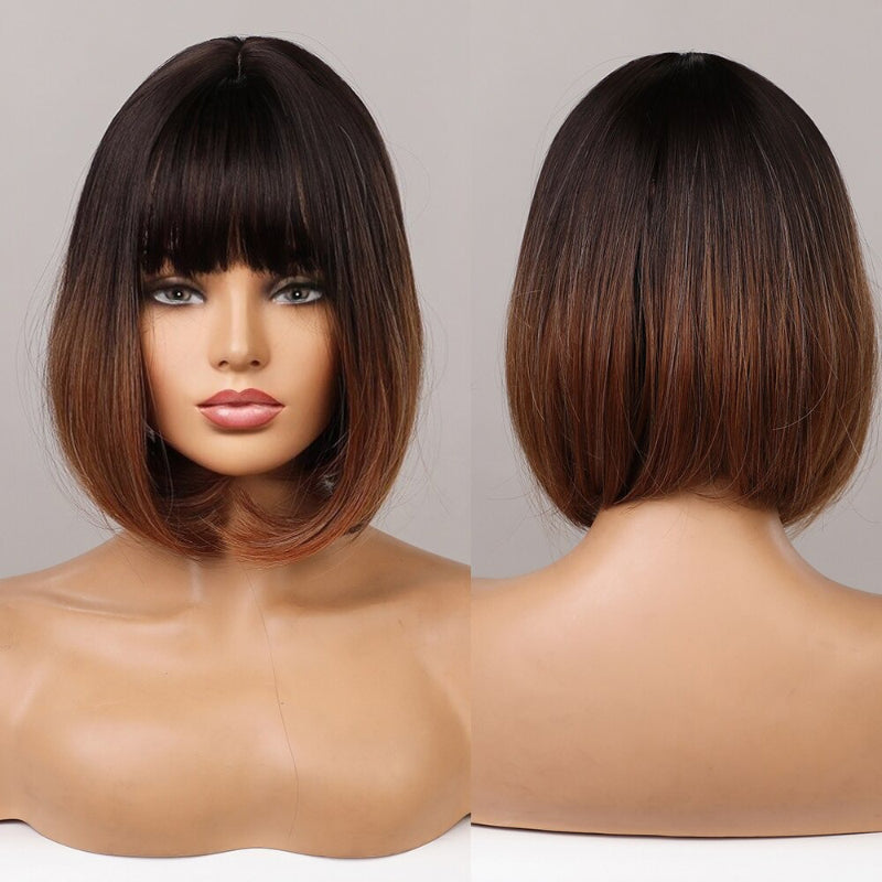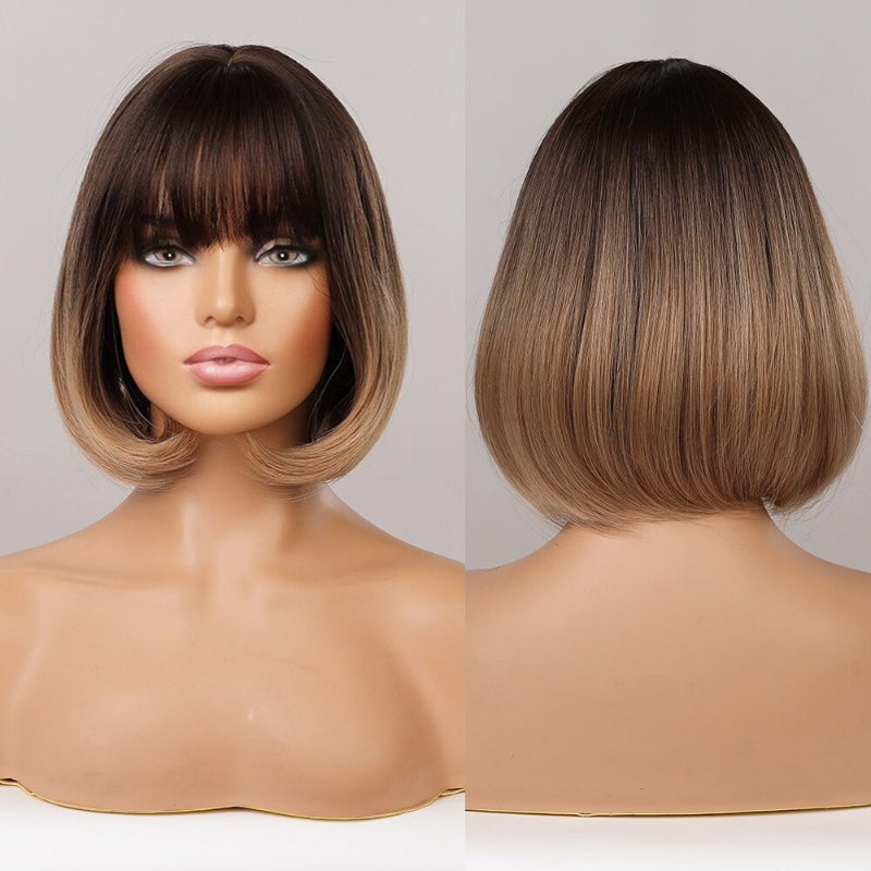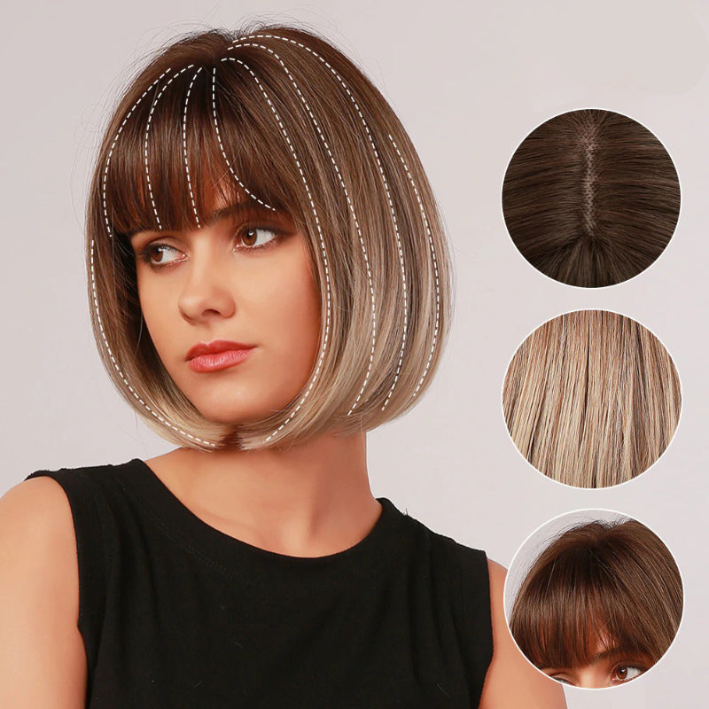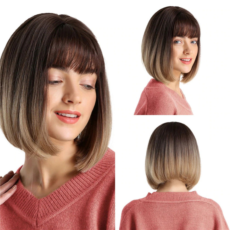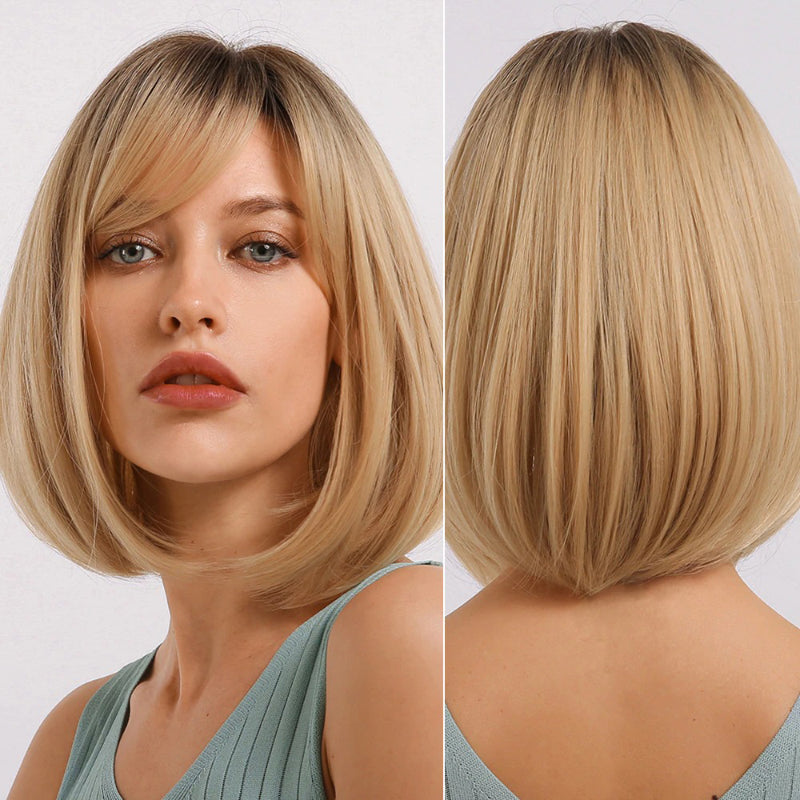 Realistic Short and Straight Ombre Blonde Hair Wigs with Bangs
