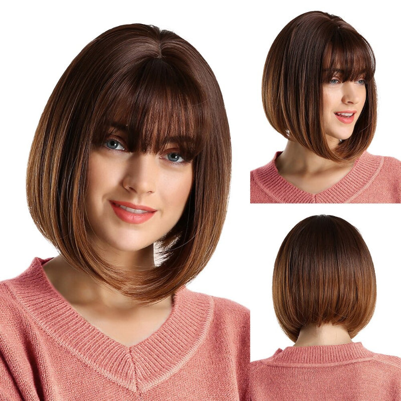 So pretty! Can you believe this is a wig? Grab one of these Realistic Short and Straight Ombre Blonde Hair Wigs with Bangs, now! Realistic looking, perfect for beginners too!