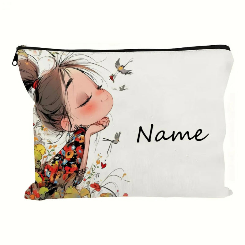 Custom Name with Cute Girl Pattern Cosmetic Makeup Pouch Bag
