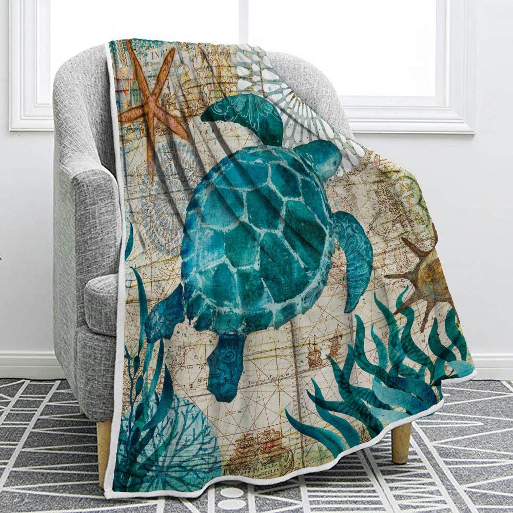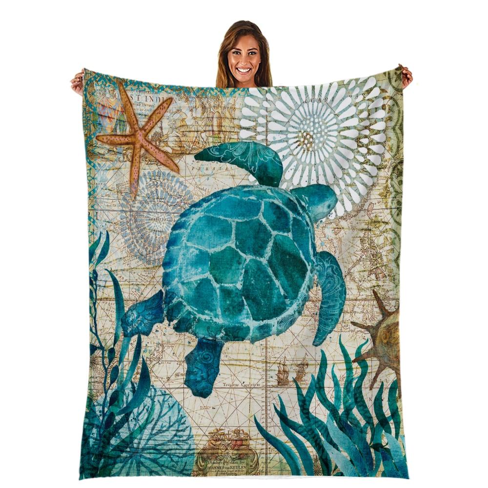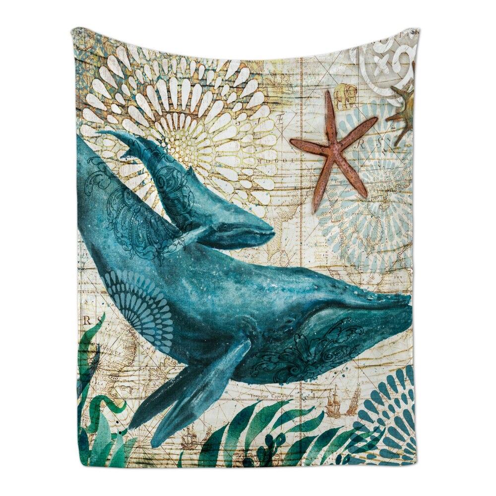 Cozy Plush Flannel Throw Blanket With Marine Animal Pattern