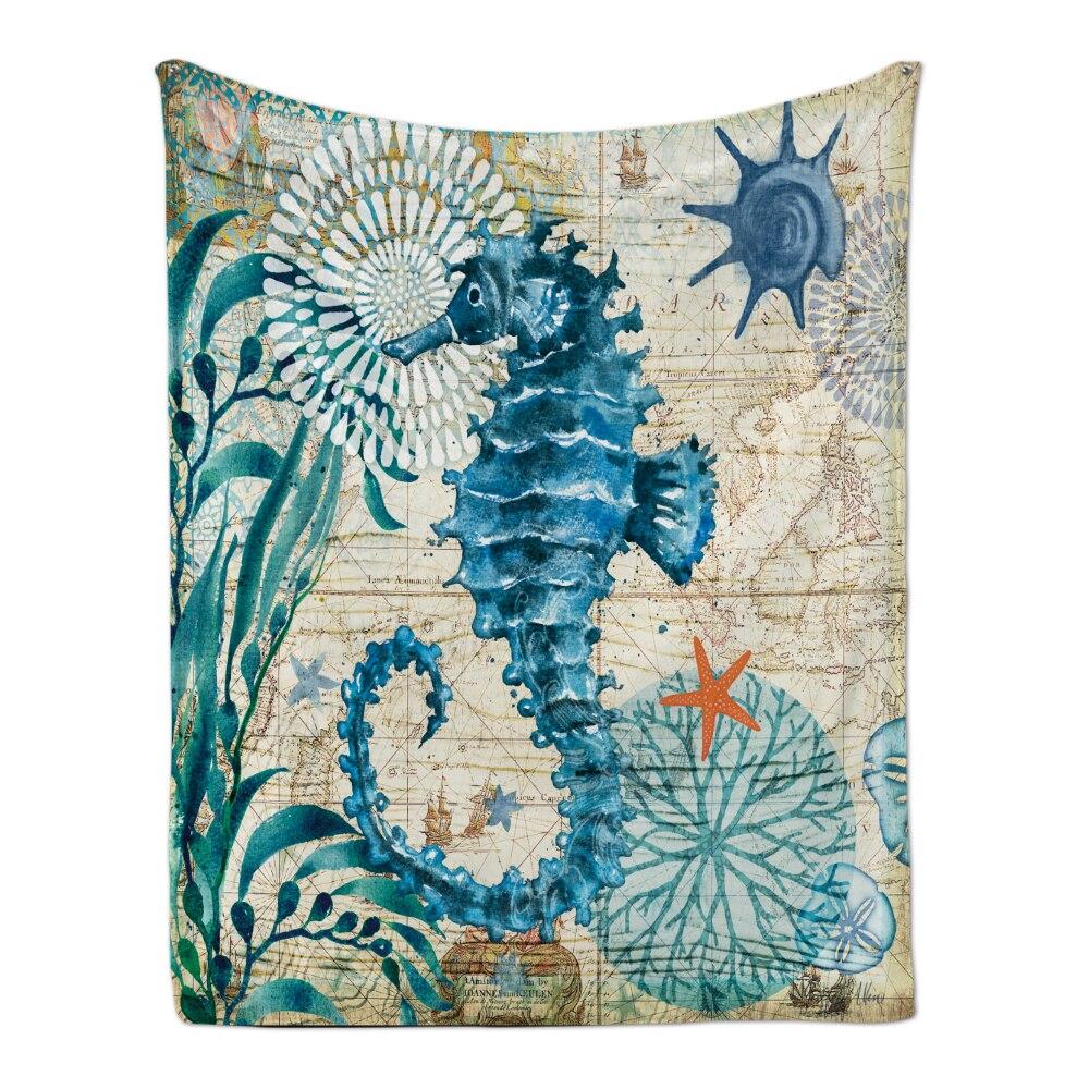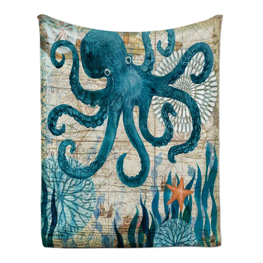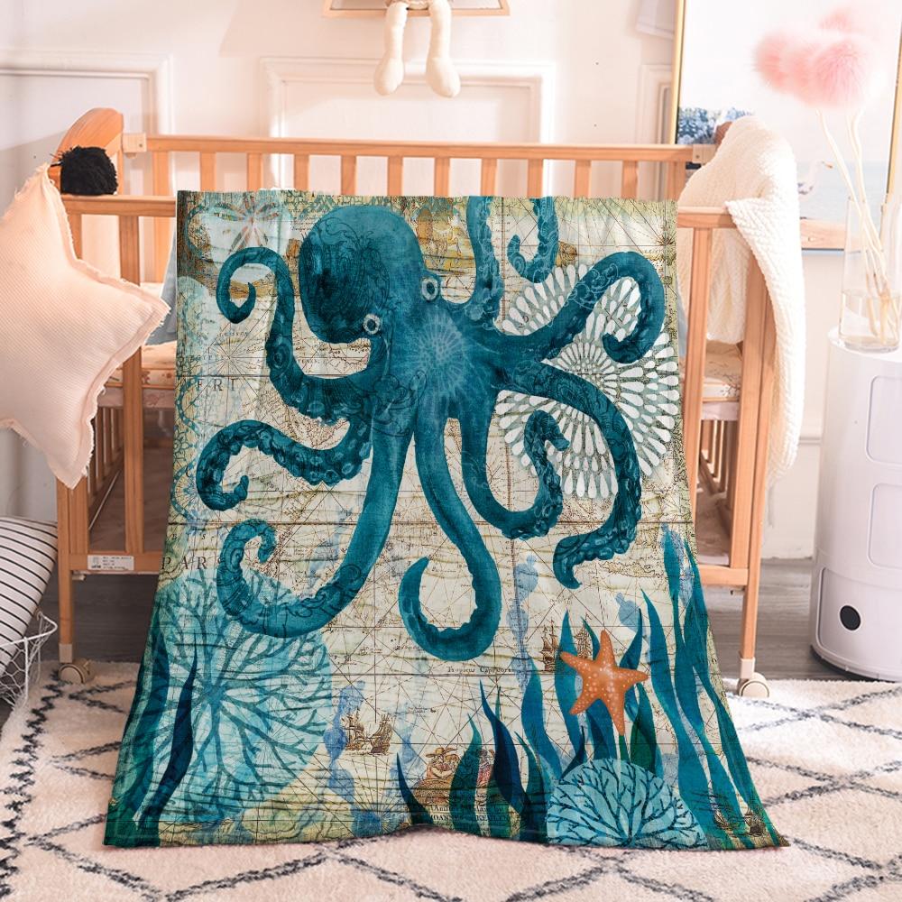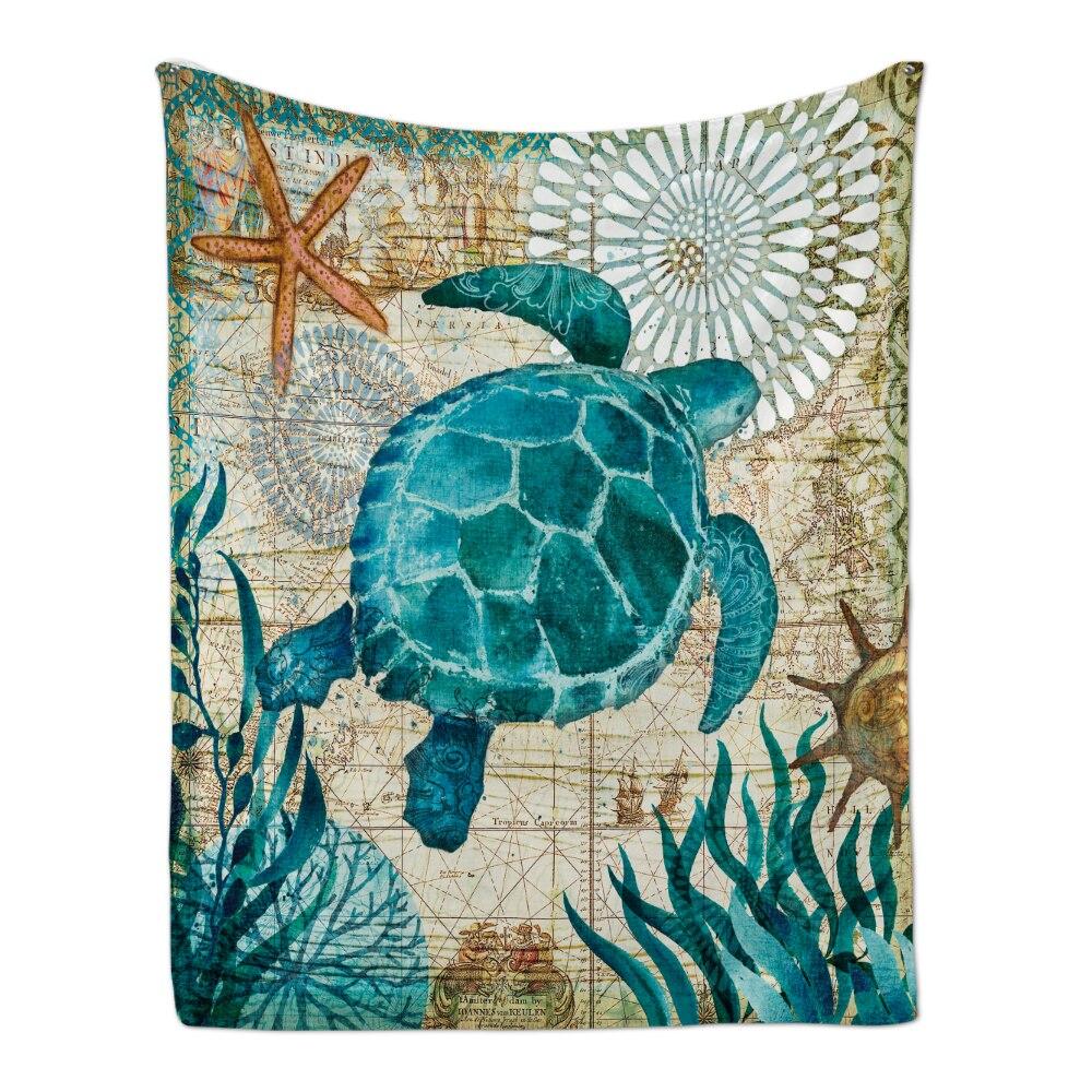 Cozy Plush Flannel Throw Blanket With Marine Animal Pattern