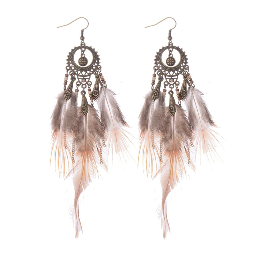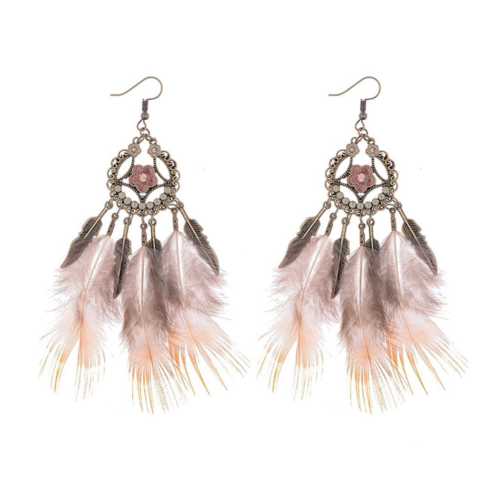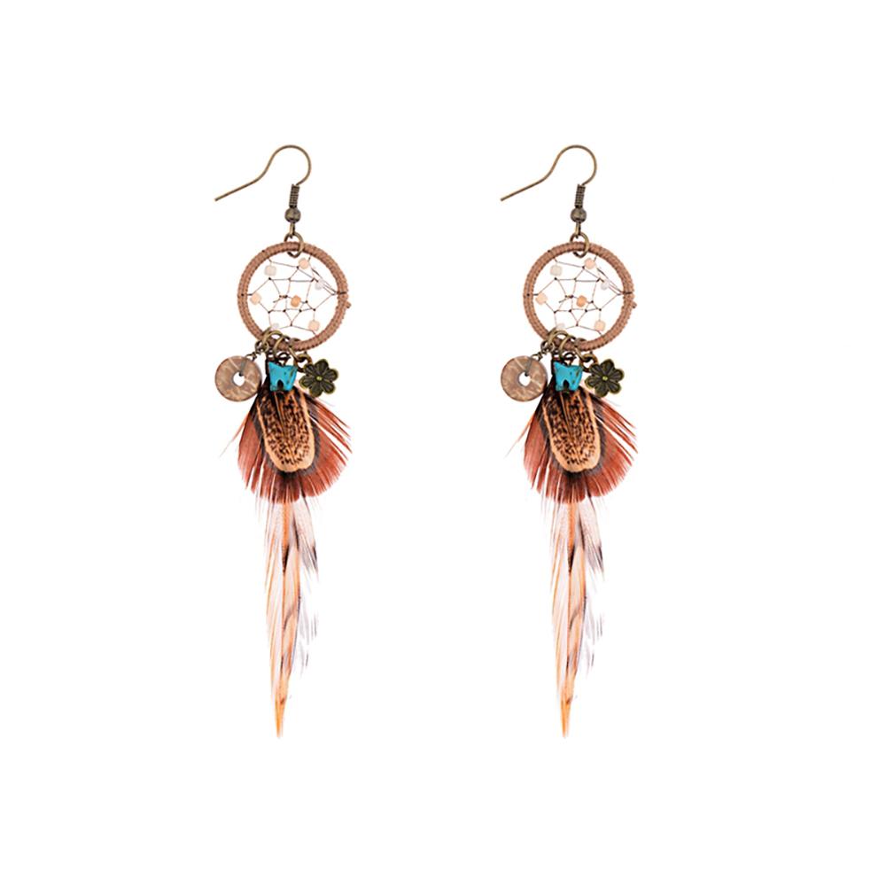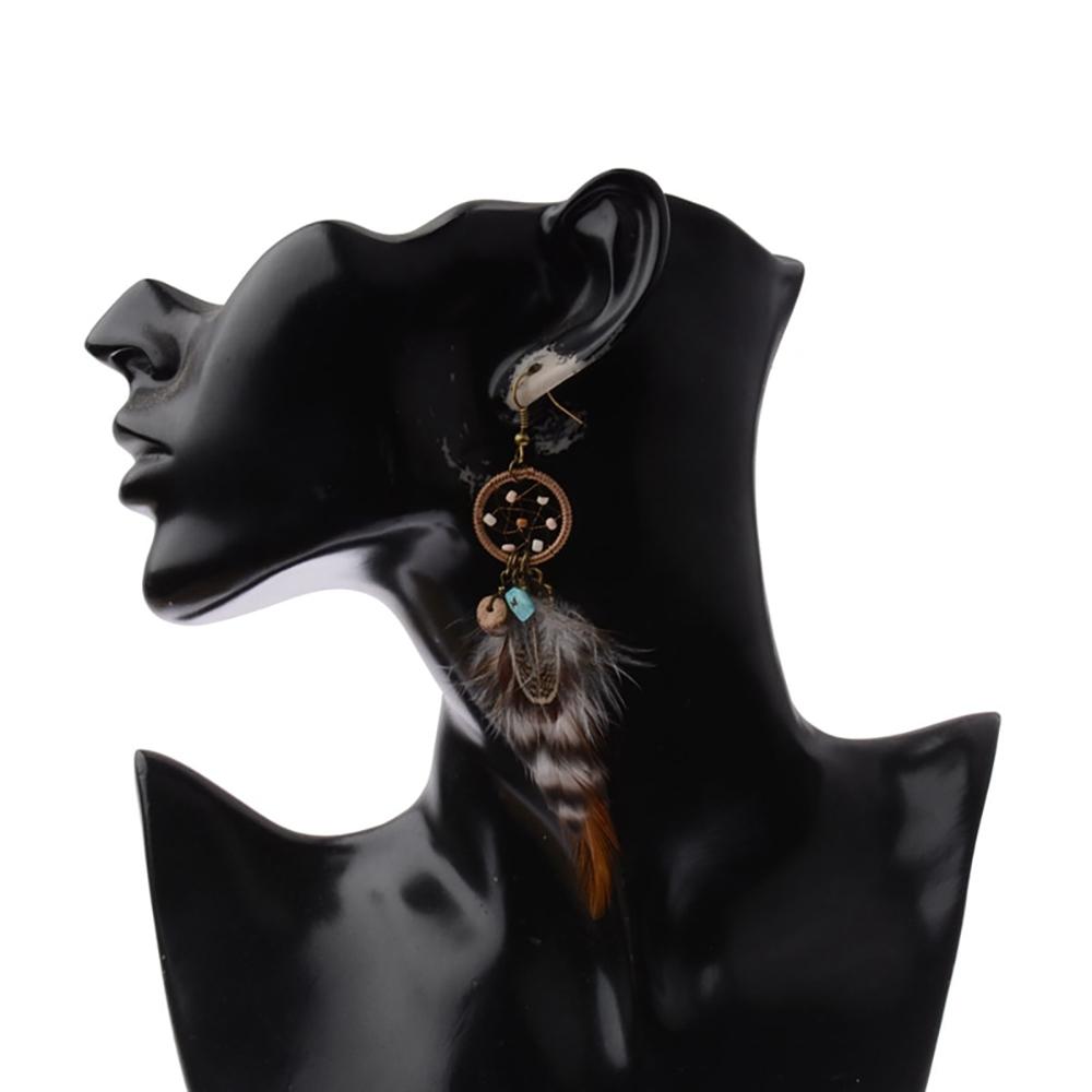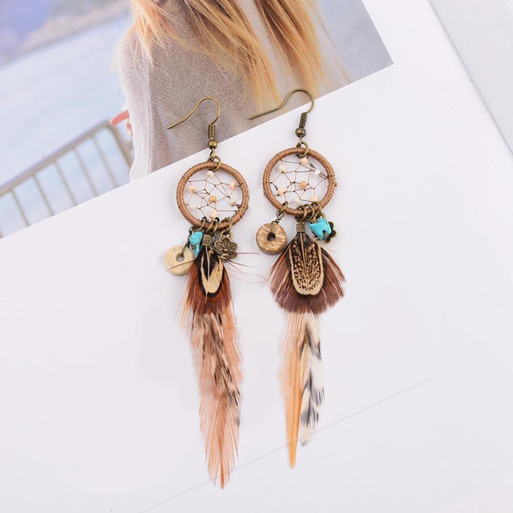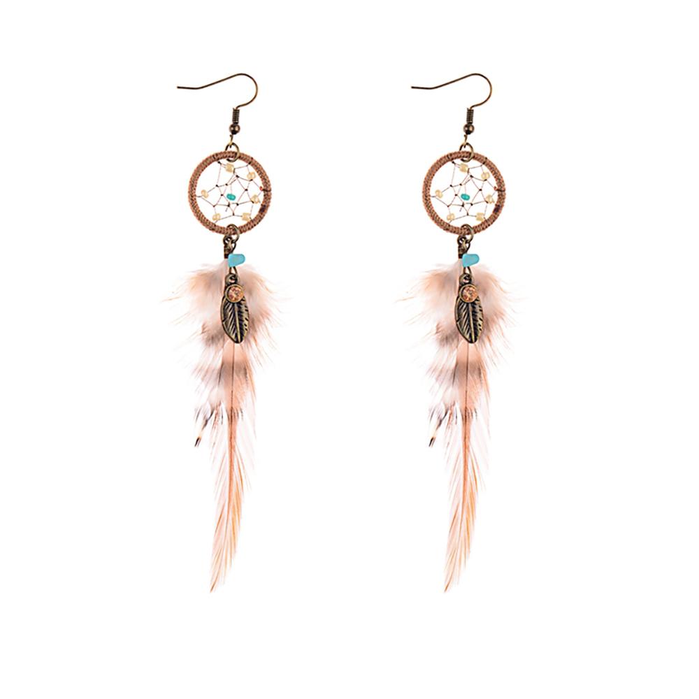 Natural Long Feather Dream Catcher Bohemian Earrings