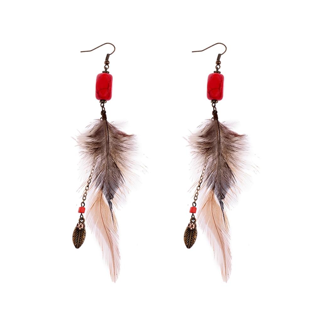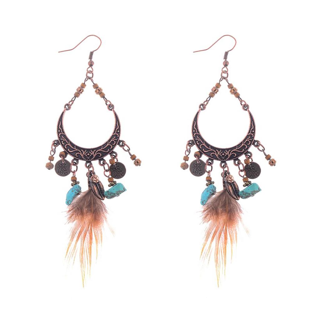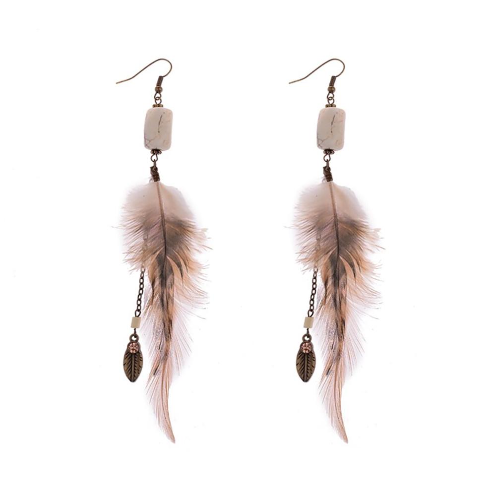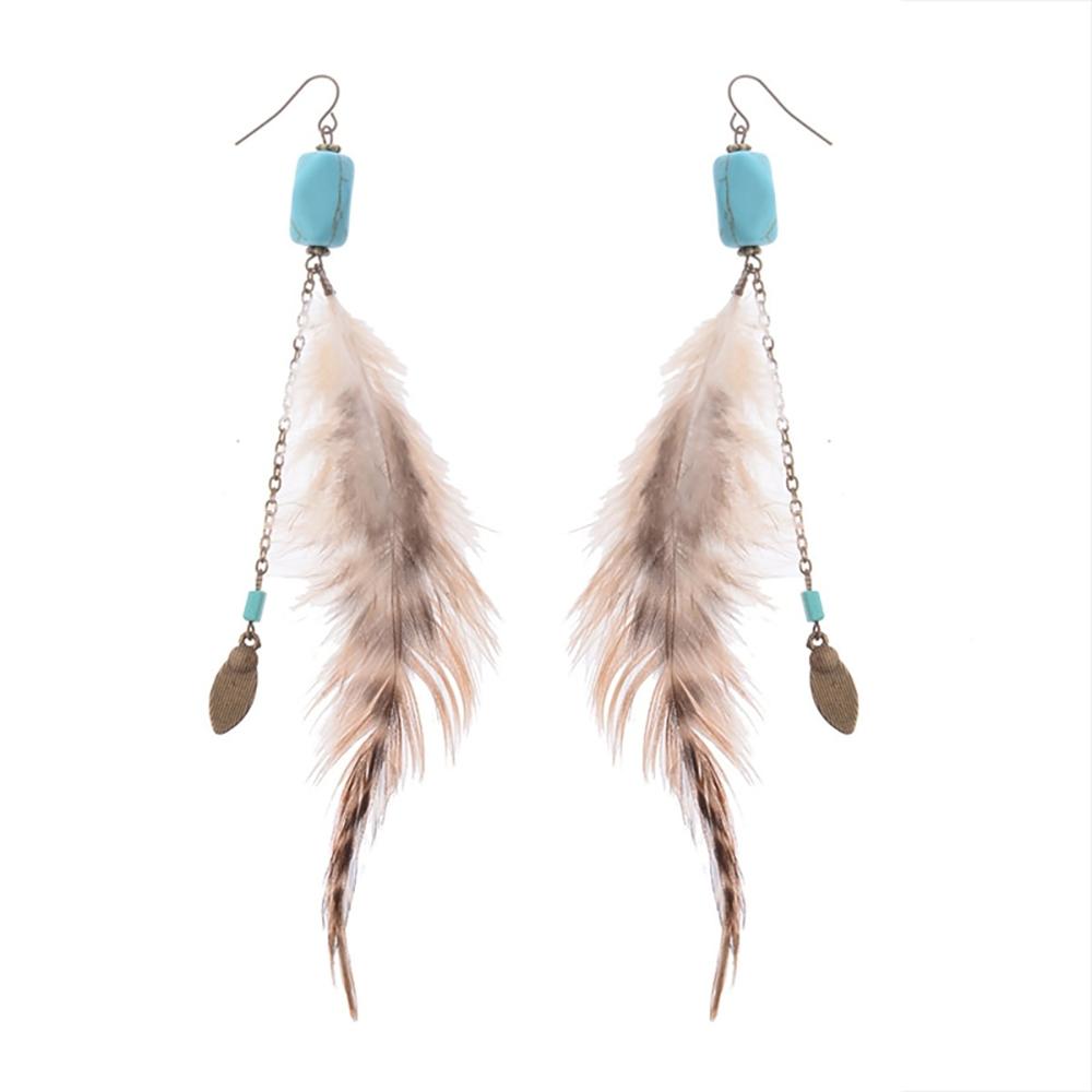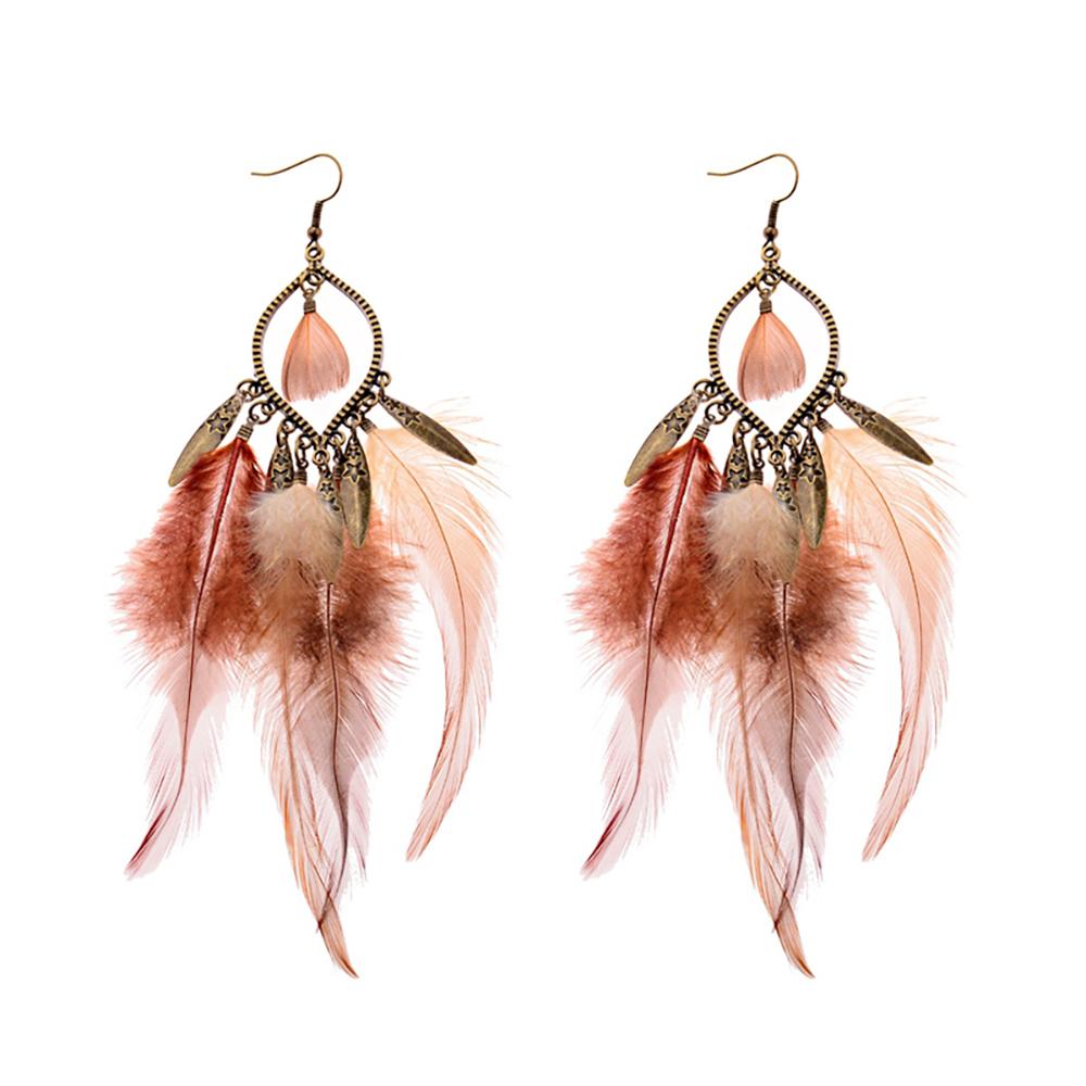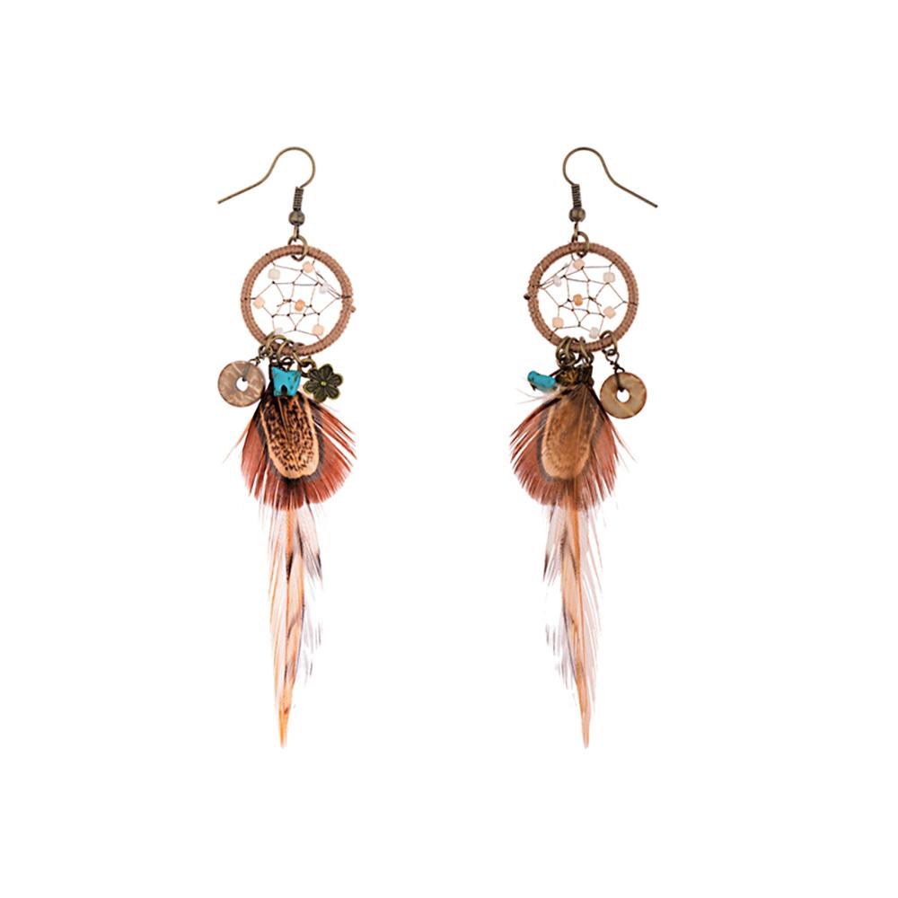 Natural Long Feather Dream Catcher Bohemian Earrings