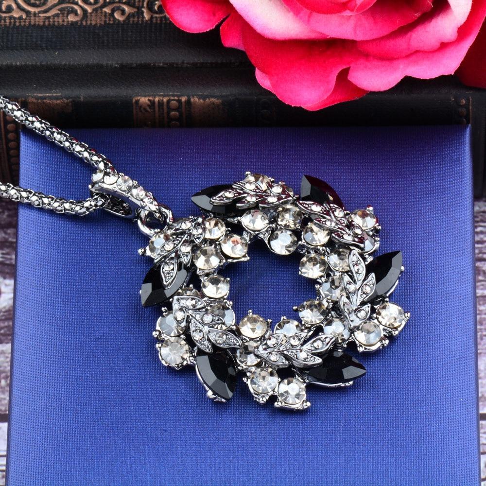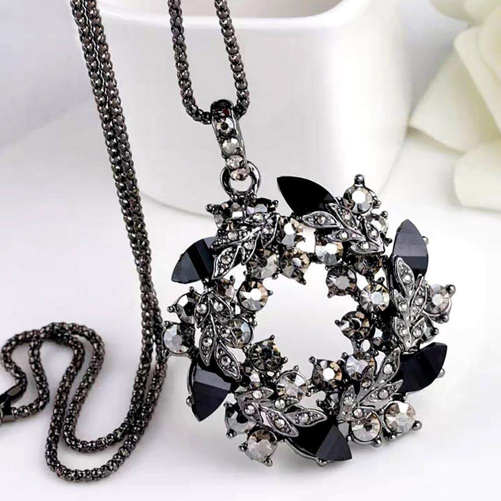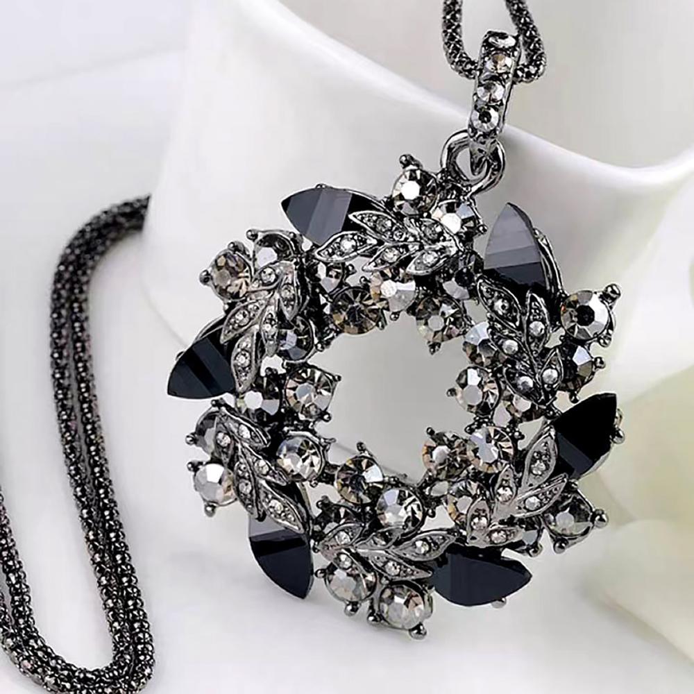 Dazzling Black Cubic Zirconia Flower Pendant Necklace