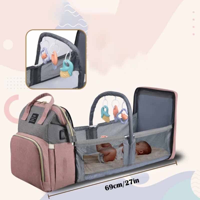 Foldable Baby Crib: The built-in portable crib unfolds in seconds, providing a safe and comfortable sleeping or changing space for your baby on the go.