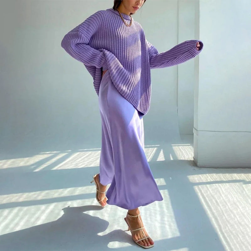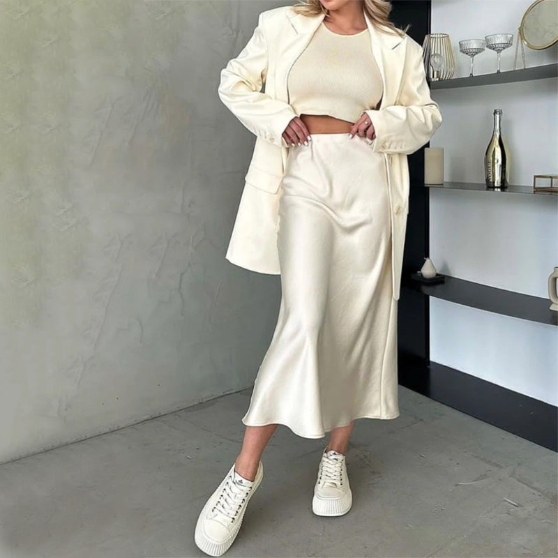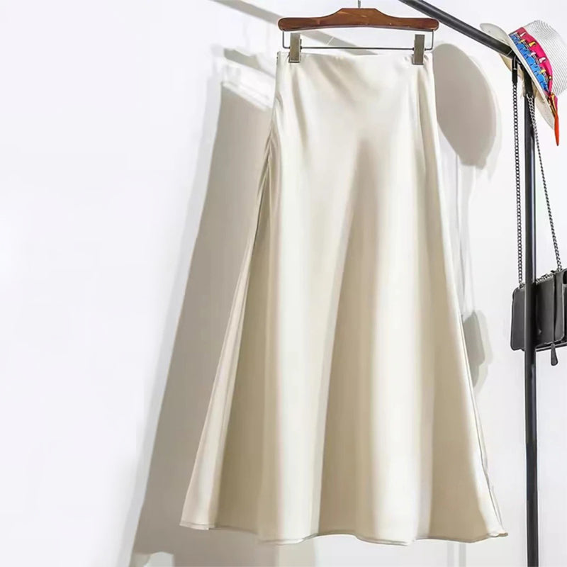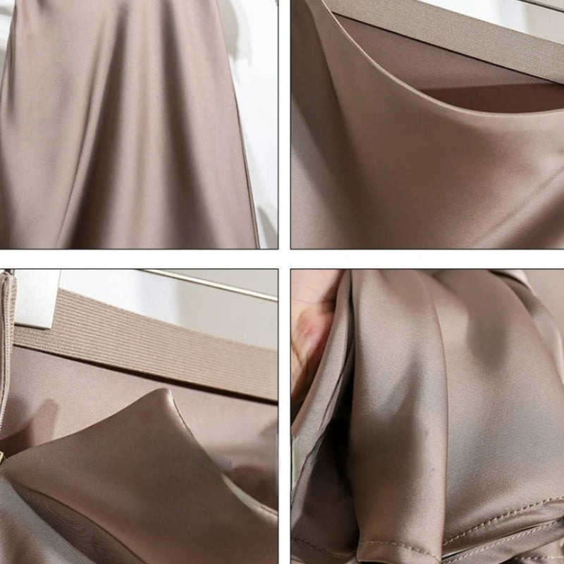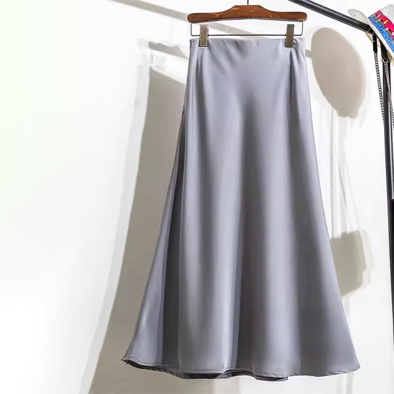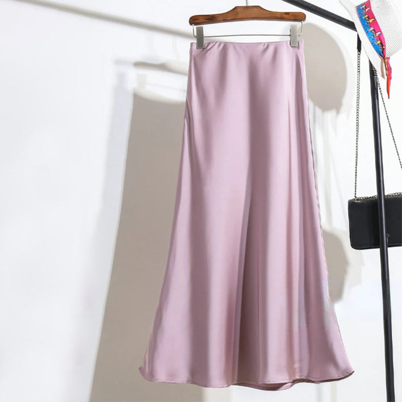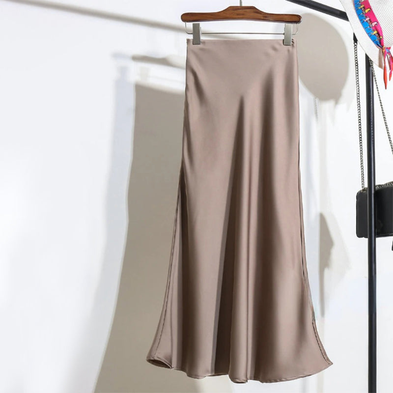 The shimmering satin fabric drapes like a dream, while the innovative stretch waistband offers a perfect fit that moves with you—no fuss, just fabulous. Designed to elevate your look and amplify your confidence, this skirt is your new go-to for making bold, effortless statements.