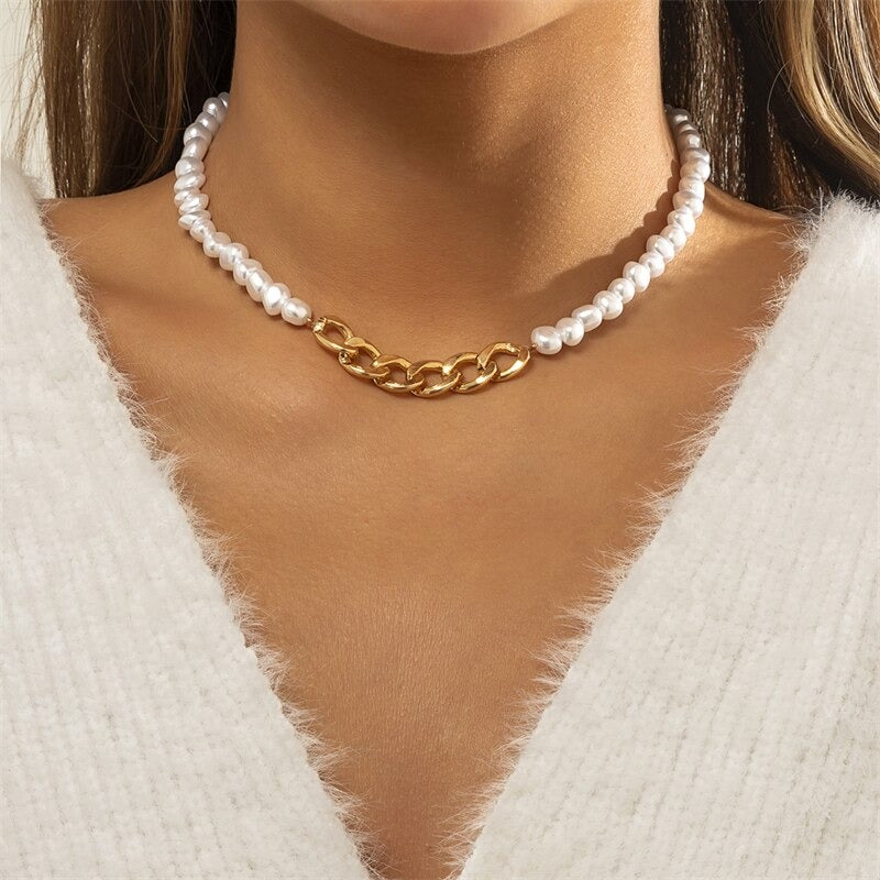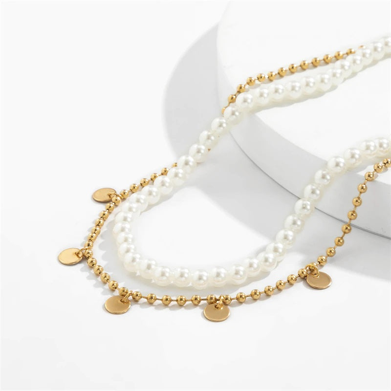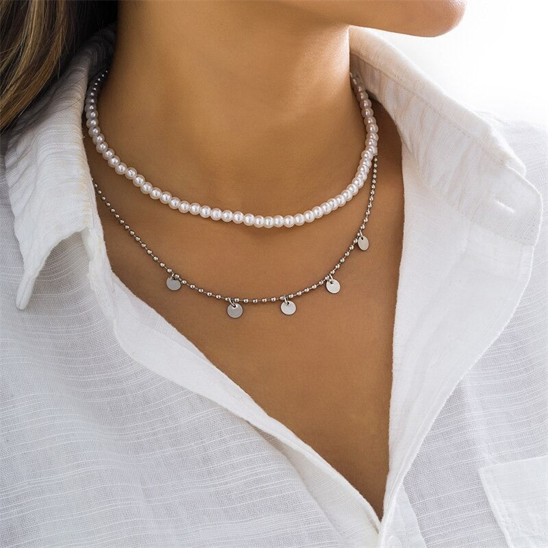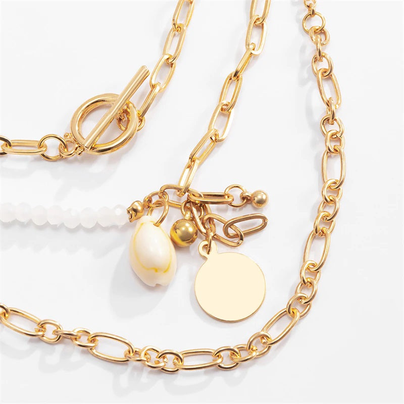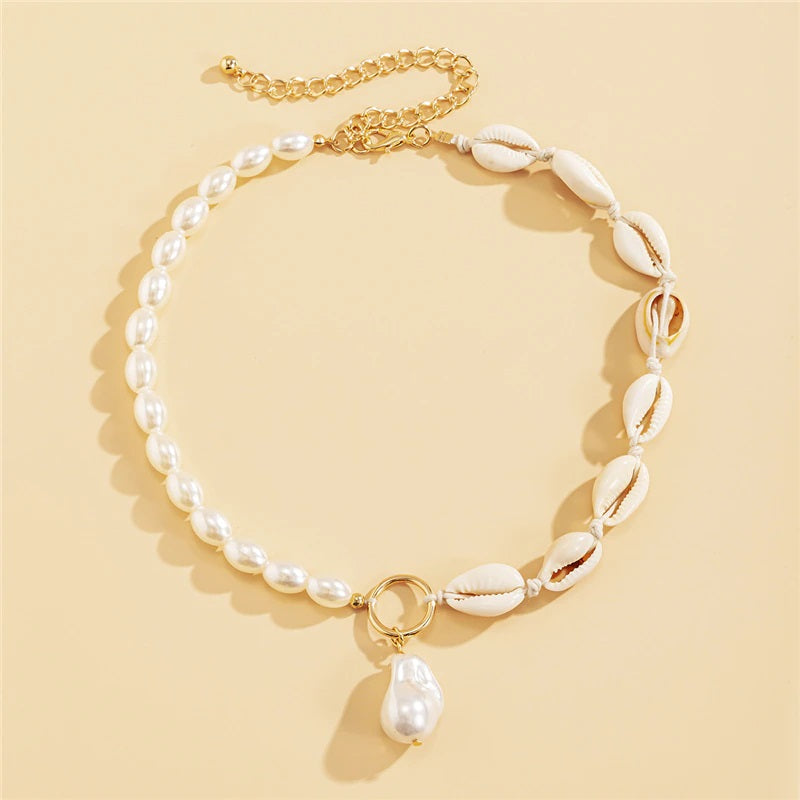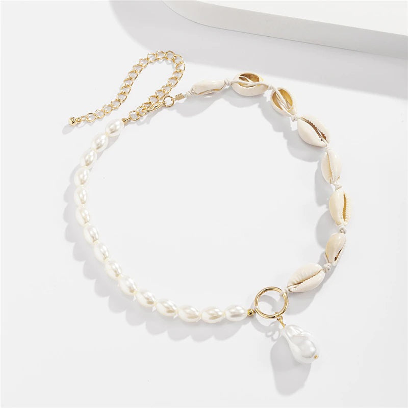 Bohemian Summer Seashells and Pearls Studded Chain Necklaces