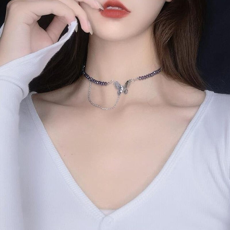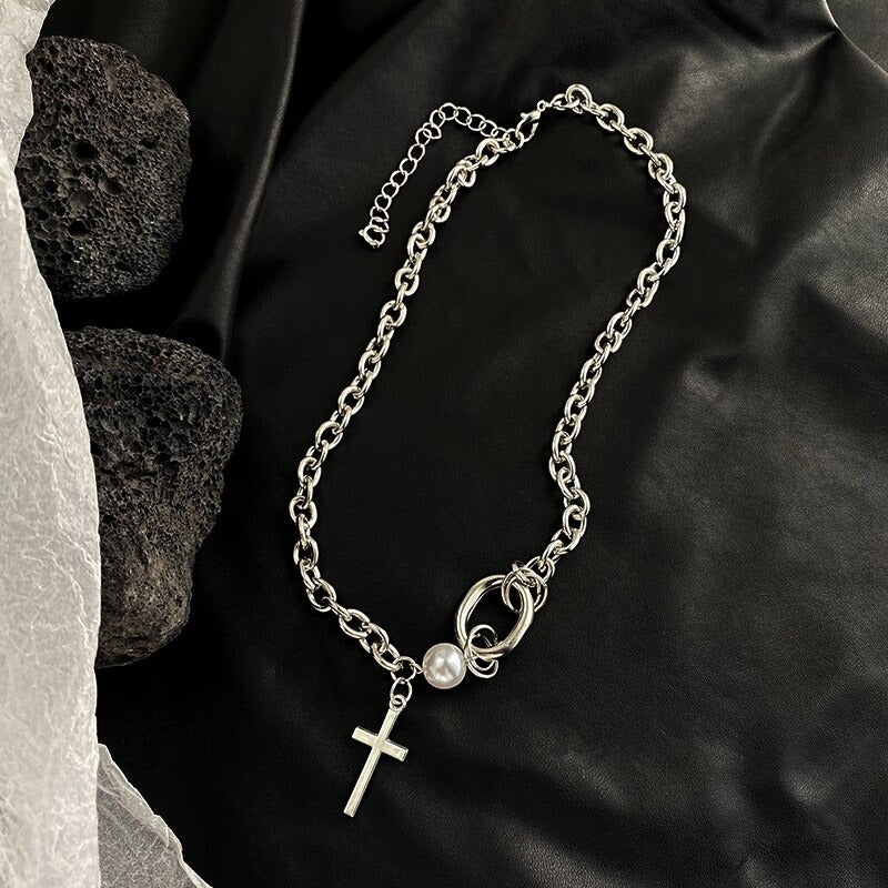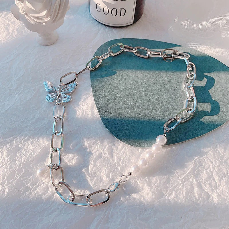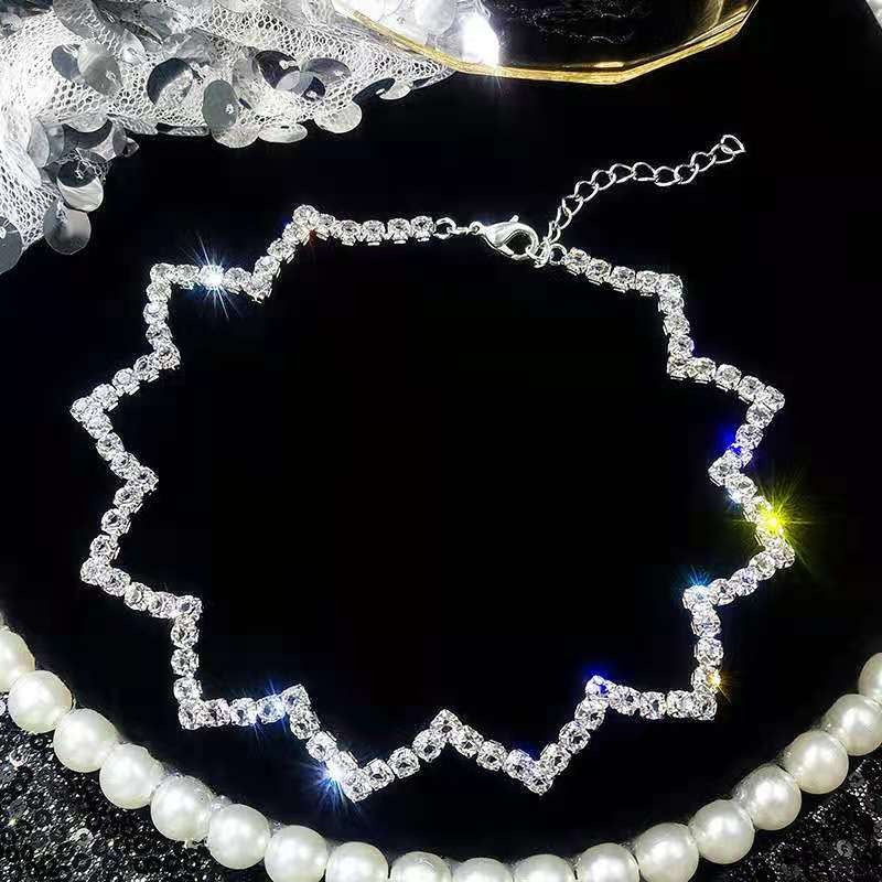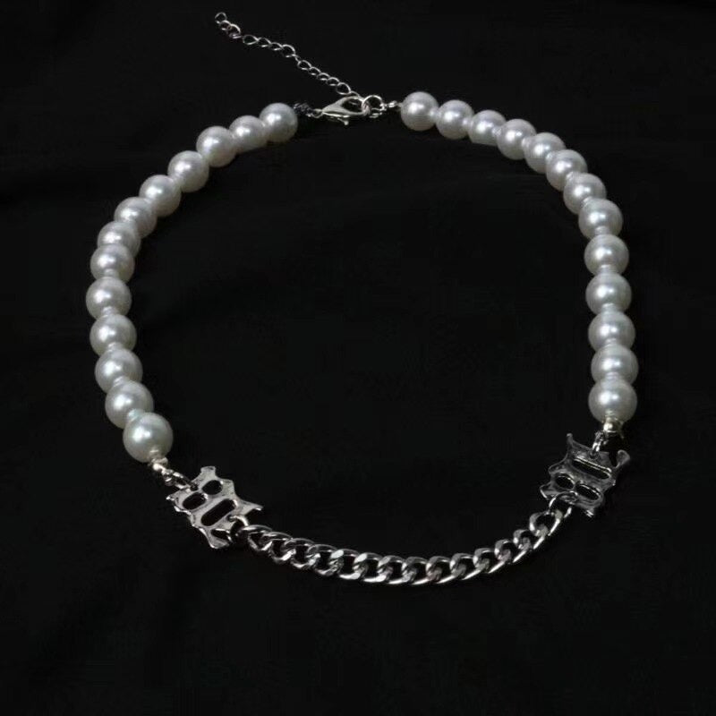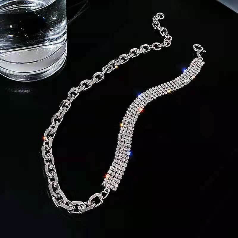 Lustrous Asymmetric Rhinestone and Pearl Choker Necklaces
