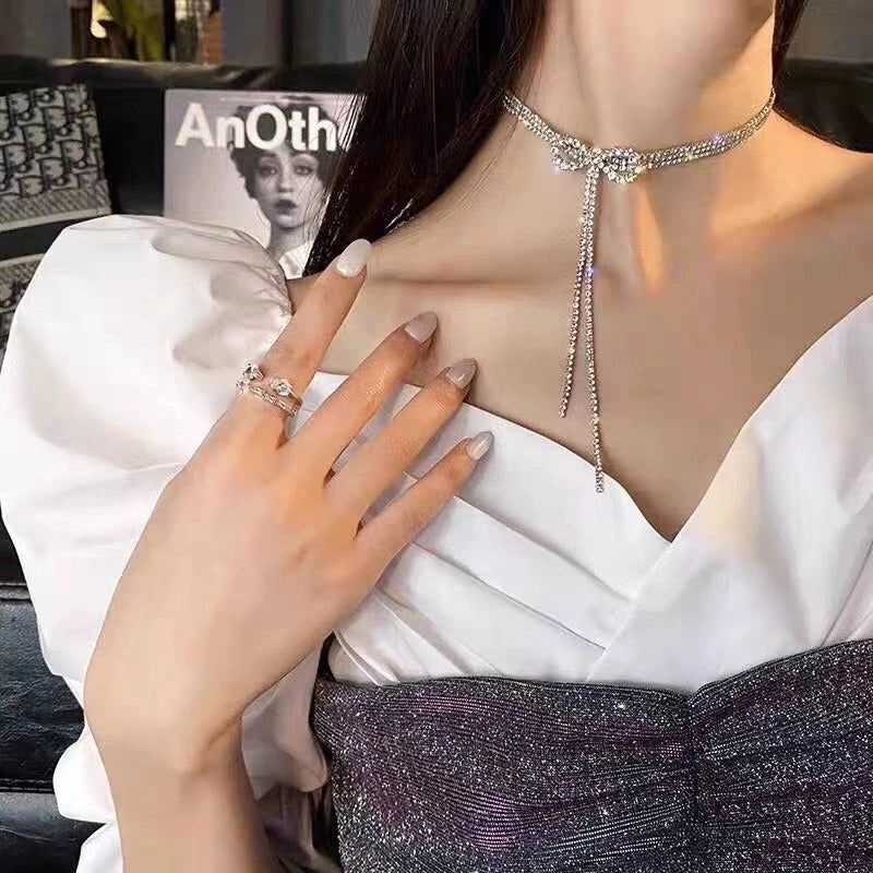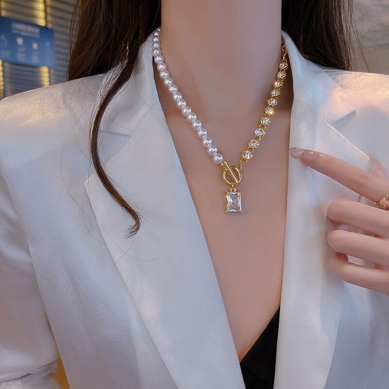Ā Illuminate your neckline while bringing elegant minimalism and style to your outfit by adding these Lustrous Asymmetric Rhinestone and Pearl Choker Necklaces! It will bring a feminine flair to your look! Elegant at its finest! It can also make a thoughtful gift for someone special!