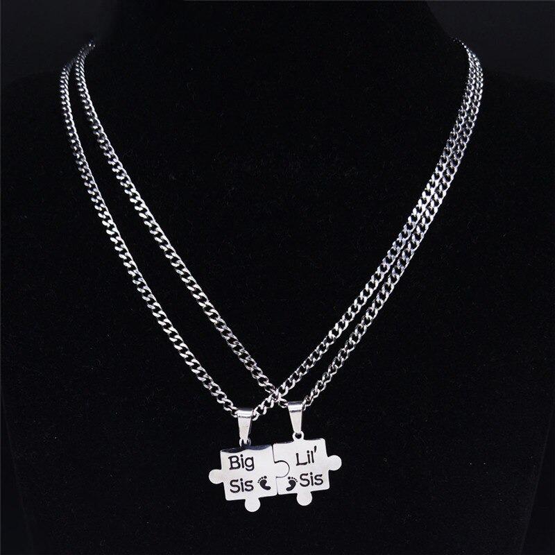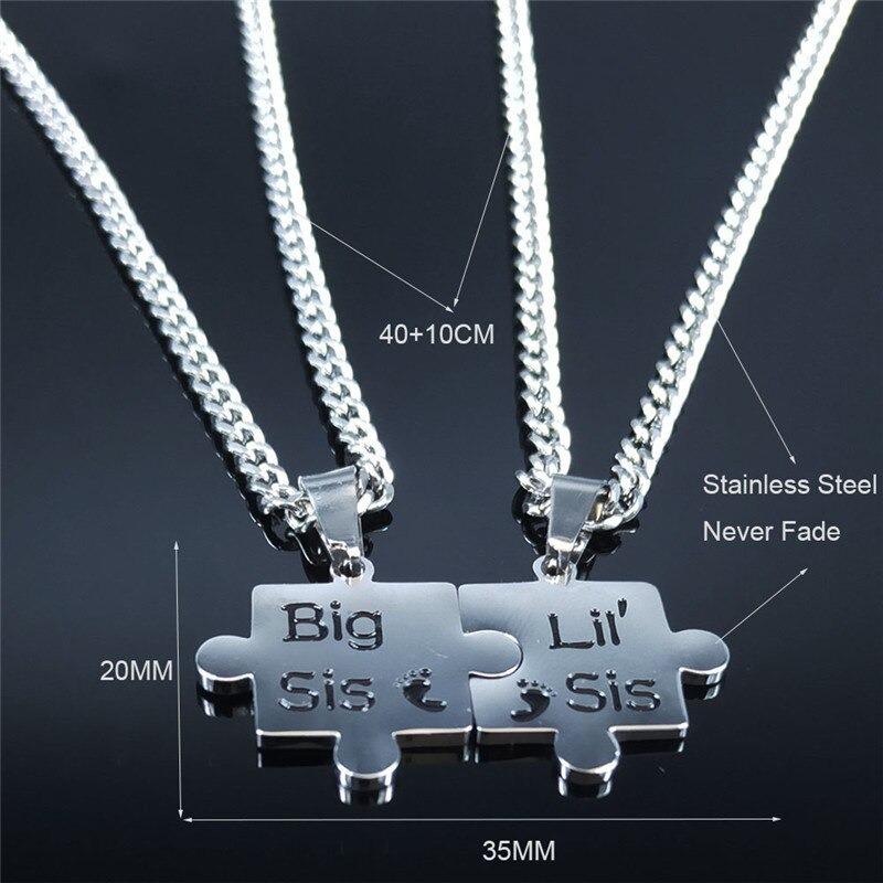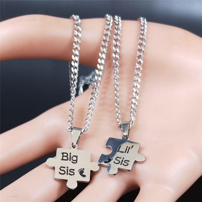 Stainless Steel "Big Sis, Lil' Sis" Puzzle Pendant Necklace