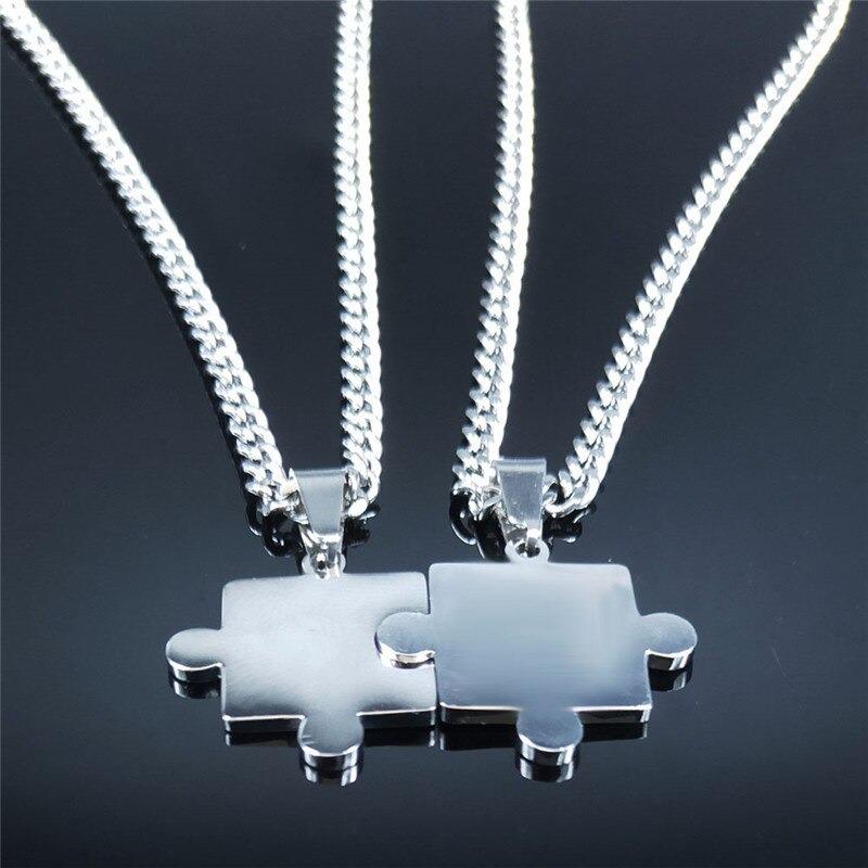 Whether you are the older sister or the younger sibling, show off your sisterly bonds by wearing and sharing this Stainless Steel "Big Sis, Lil' Sis" Puzzle Pendant Necklace!