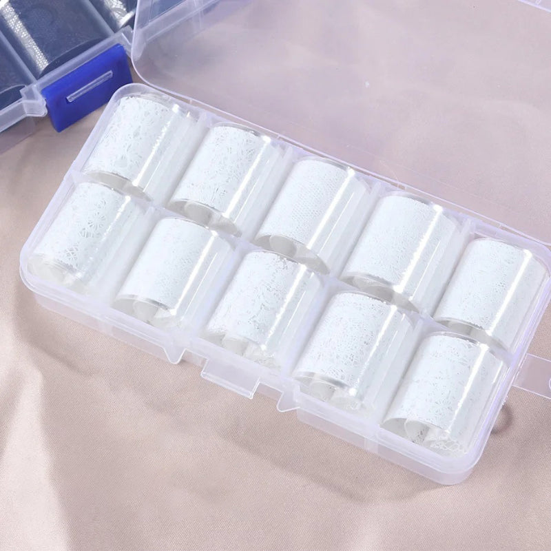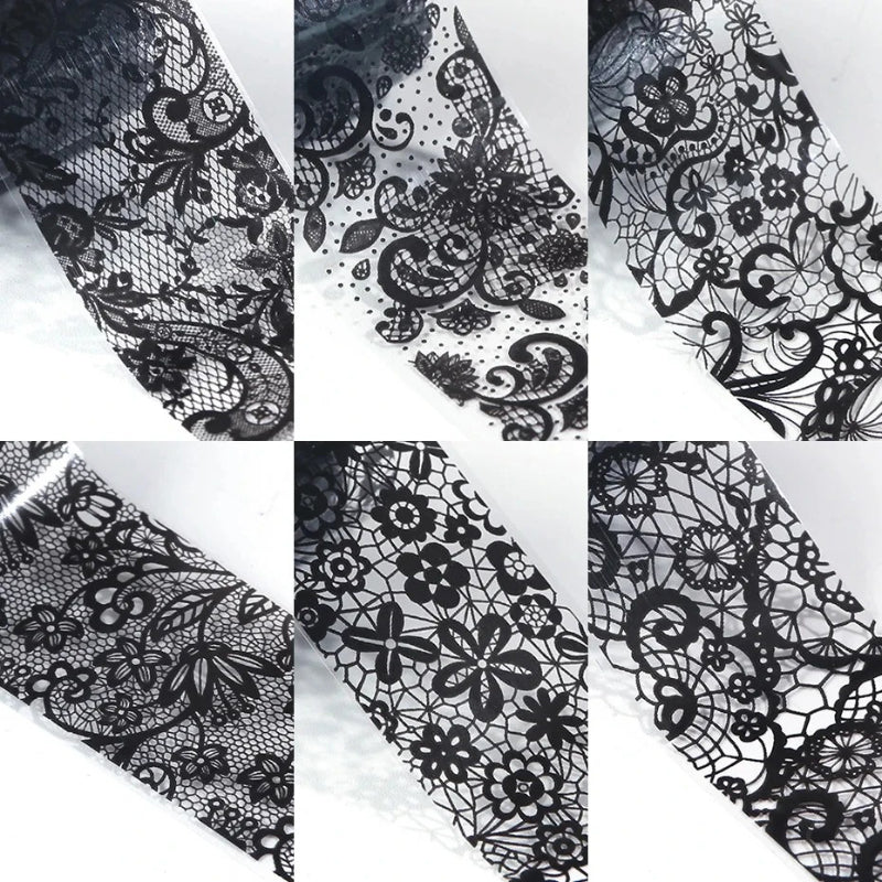 10 Rolls Black and White Lace Nail Art Foils for Easy DIY Nail Decor