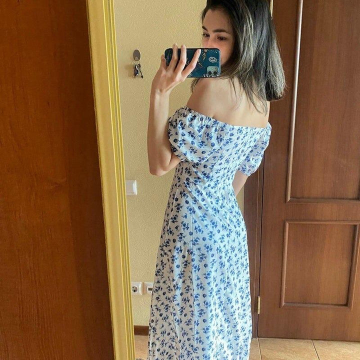 Breezy Summer Off-Shoulder Floral Print Split Side Dress