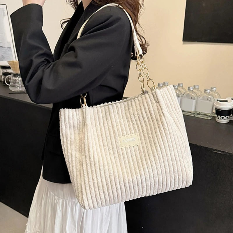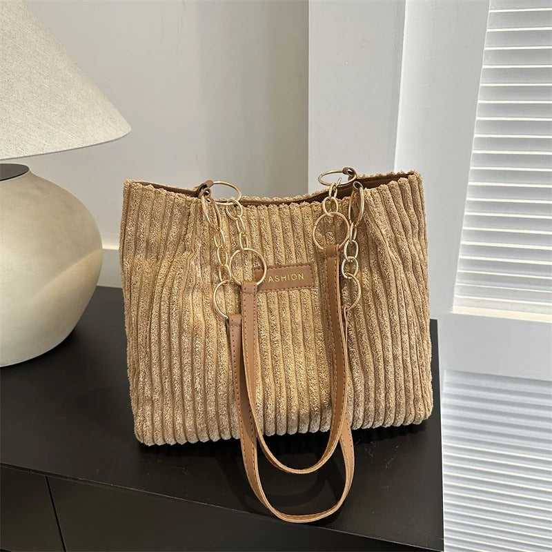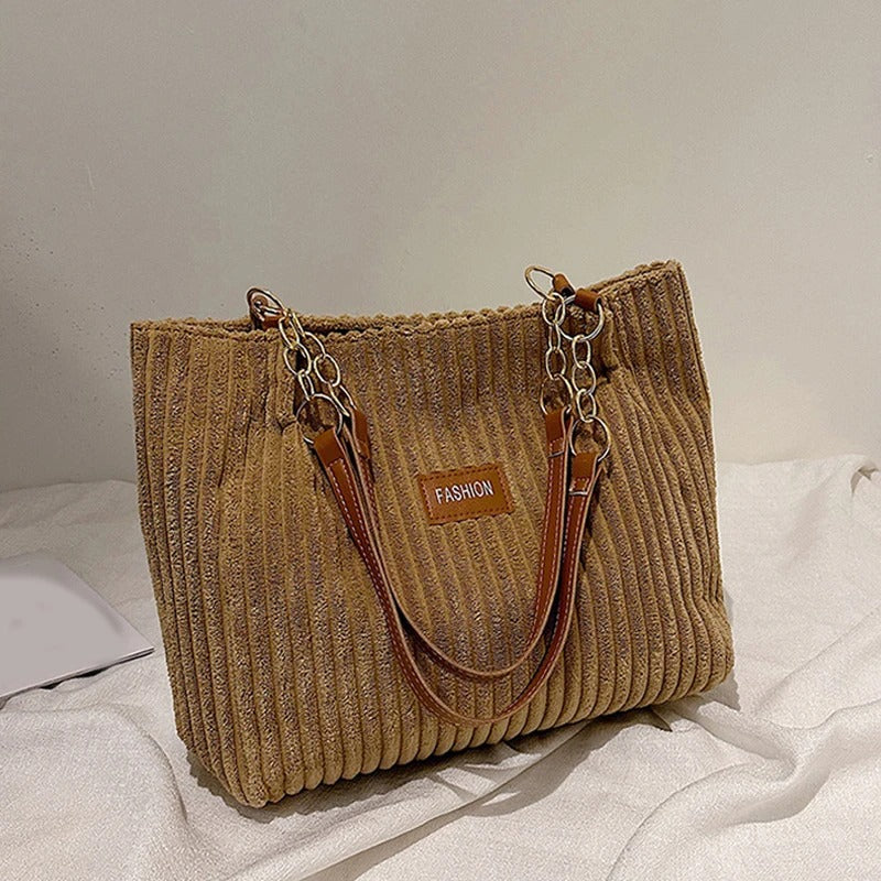 Meet the Women's Corduroy Tote Shoulder Bag — the perfect blend of laid-back style and effortless sophistication.
