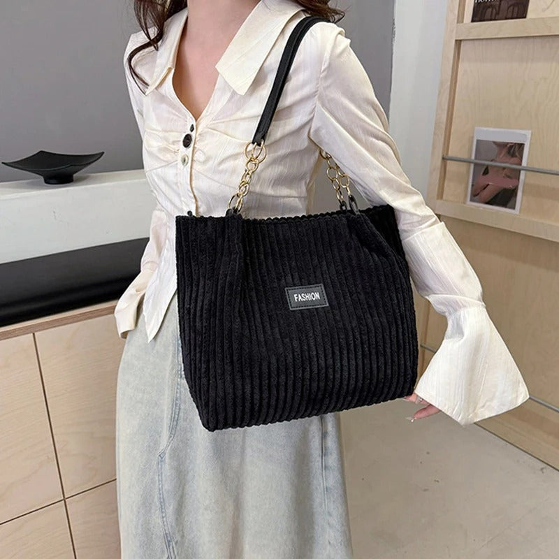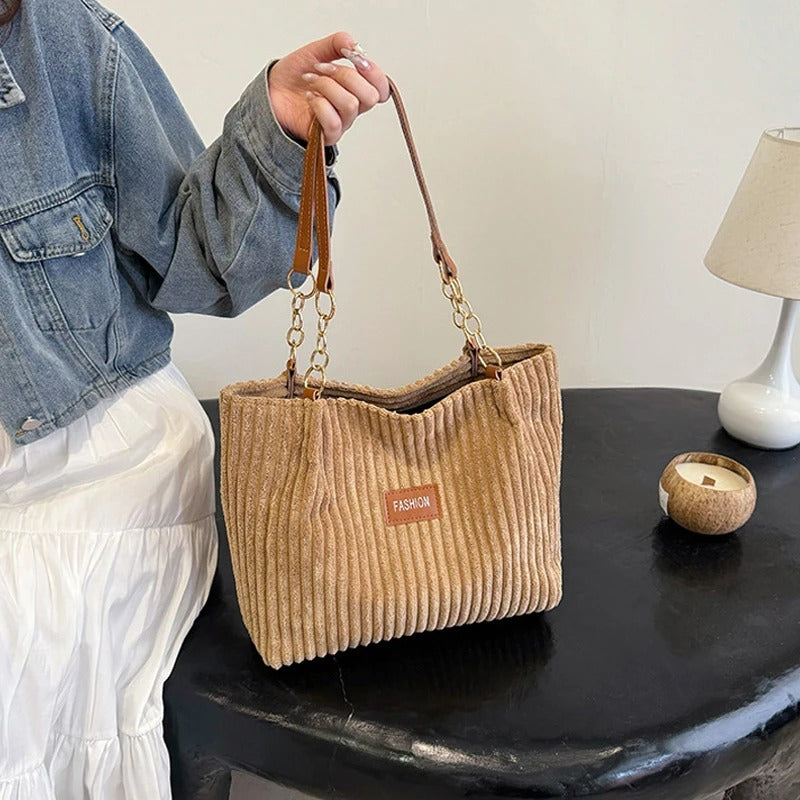 Casual-Chic Vibe Women's Corduroy Tote Shoulder Bag