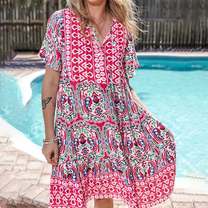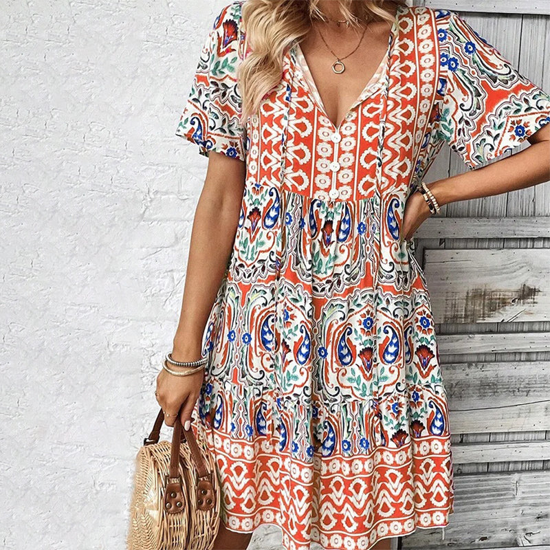 Casual Printed Bohemian Style V-neck Dress for Women