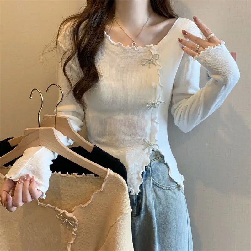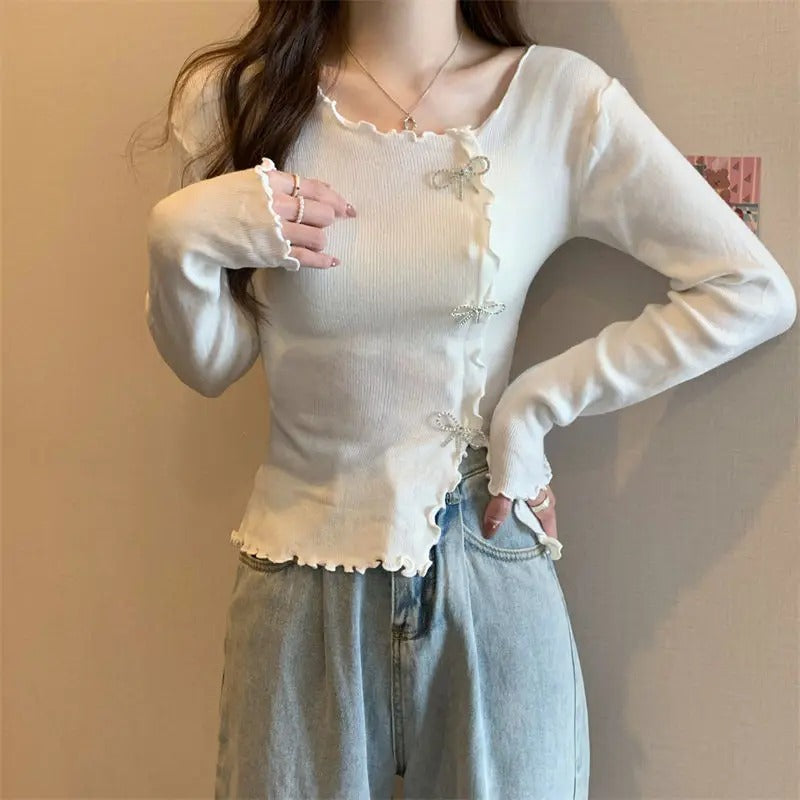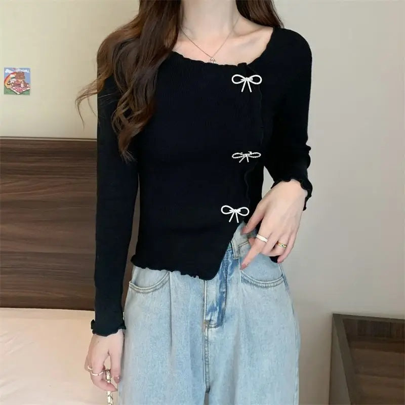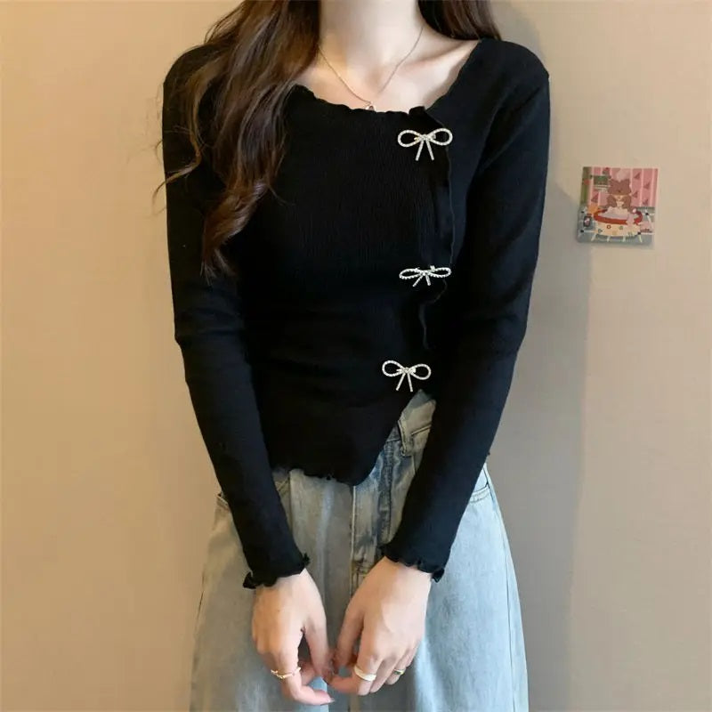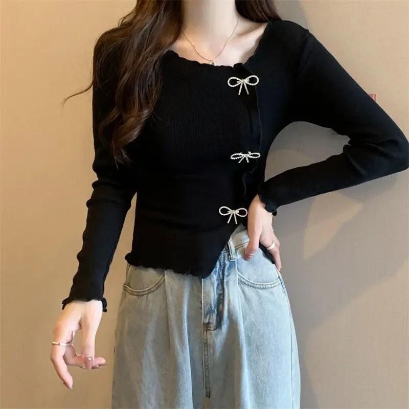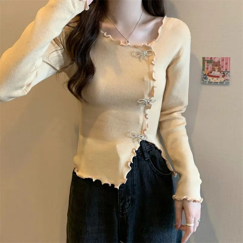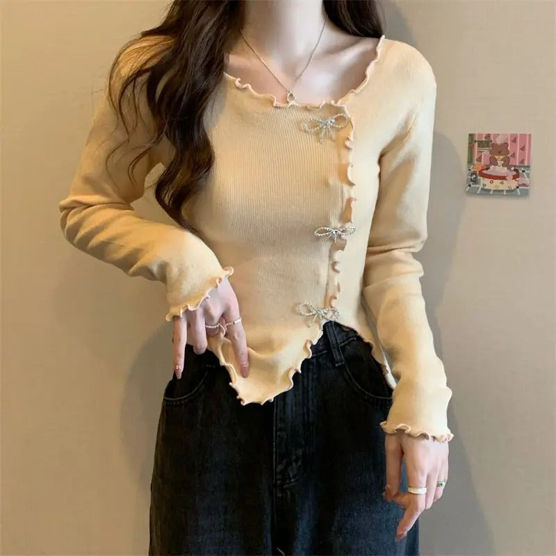 Step into effortless style with our Casual Ruffled Bow-Accent Long Sleeve Sweater!