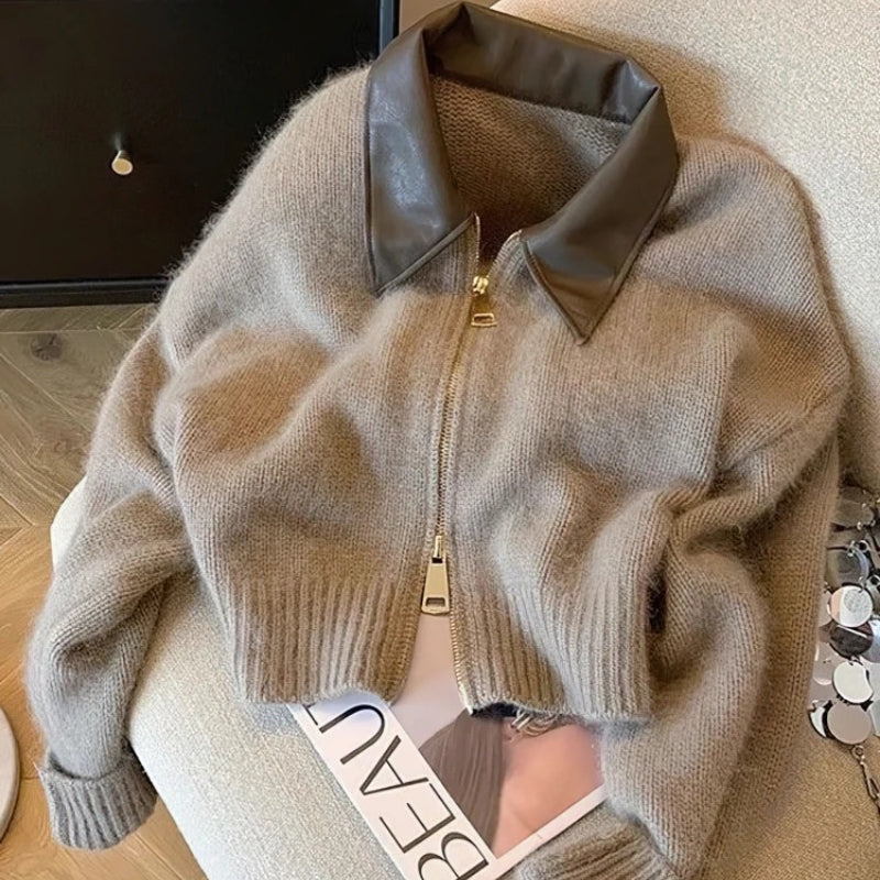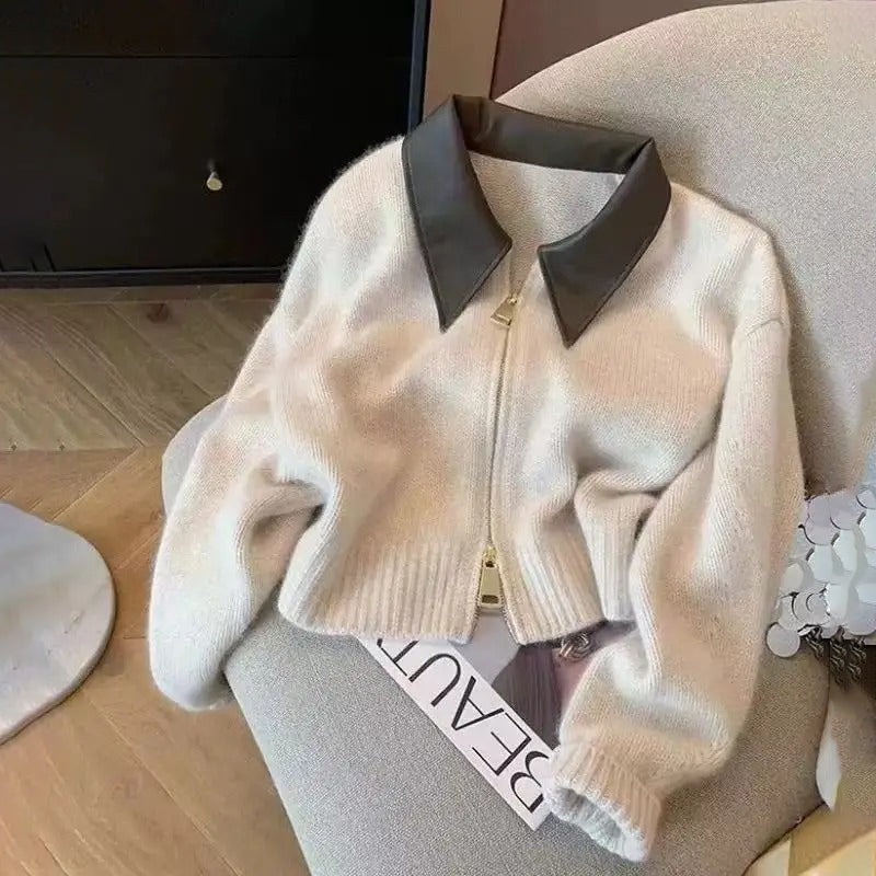 Cozy Long Sleeve Zip-up Cropped Cardigan Sweater for Women