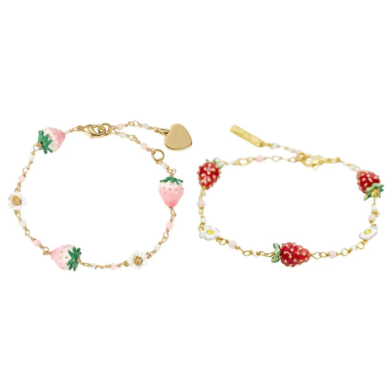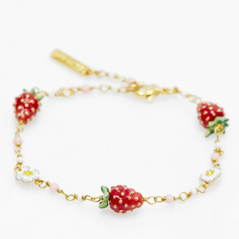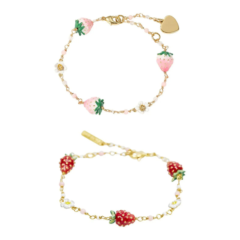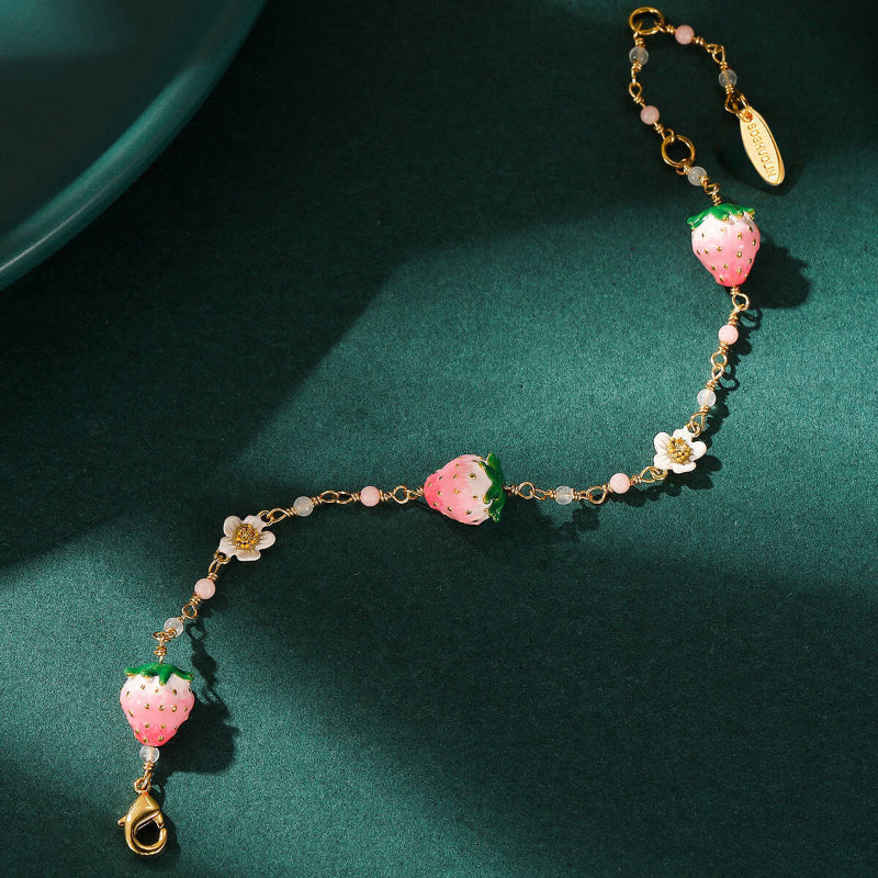 Dainty Strawberry and Flower Charm Bracelet for Women