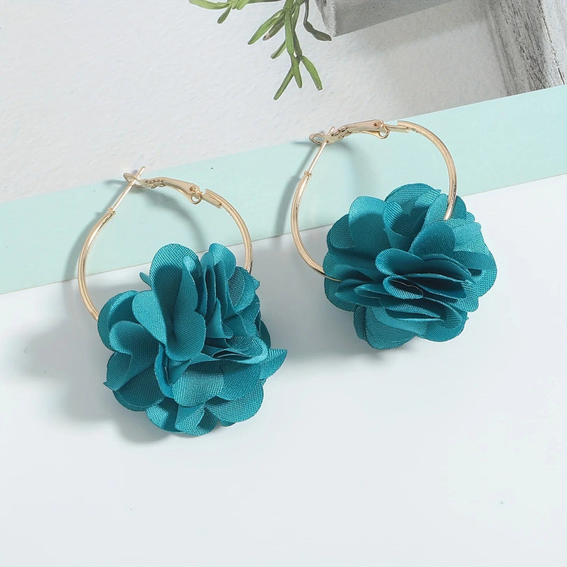 Delicate Flower-shaped Fabric Hoop Earrings for Women