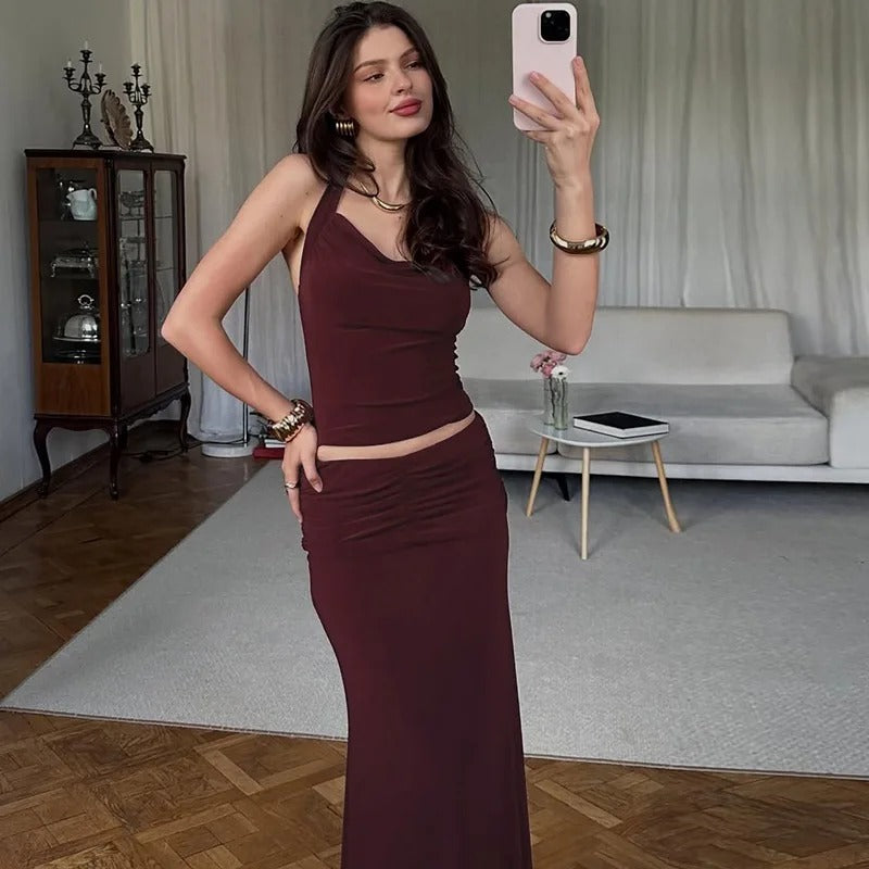 Form-fitting Sleeveless Crop Top and Maxi Skirt Matching Set