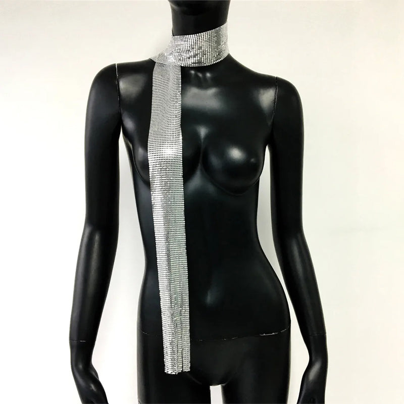 Glam Metallic Finish Sequin Tassel Scarf for Party Wear