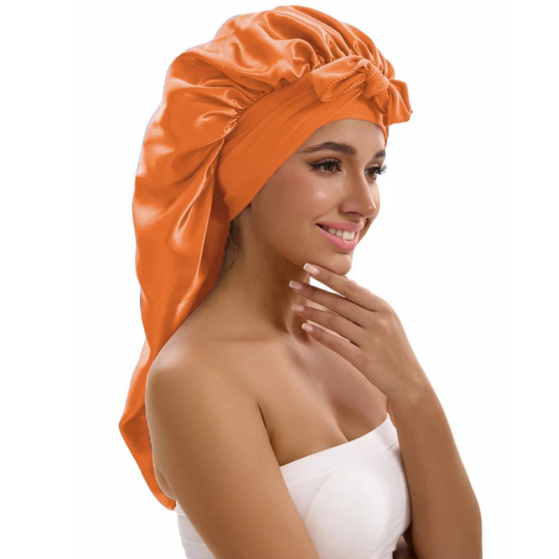 Long Hair Friendly Satin Sleep Caps for Women with Stylish Ribbon Tie