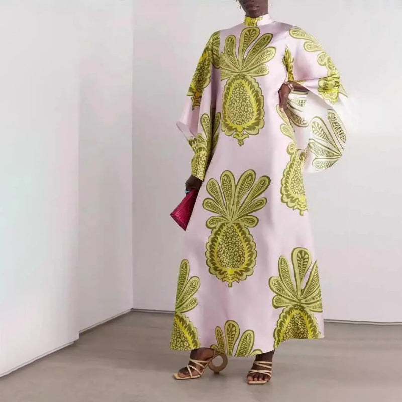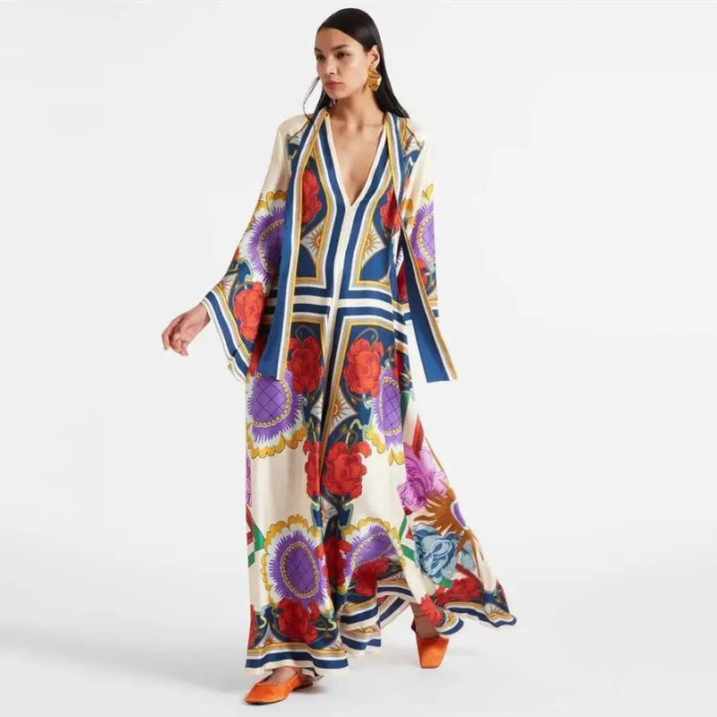 Ready to Make a Statement? Embrace Free-Spirited Fashion with Our Loose Printed Bohemian Long Sleeve Maxi Dress for Women!