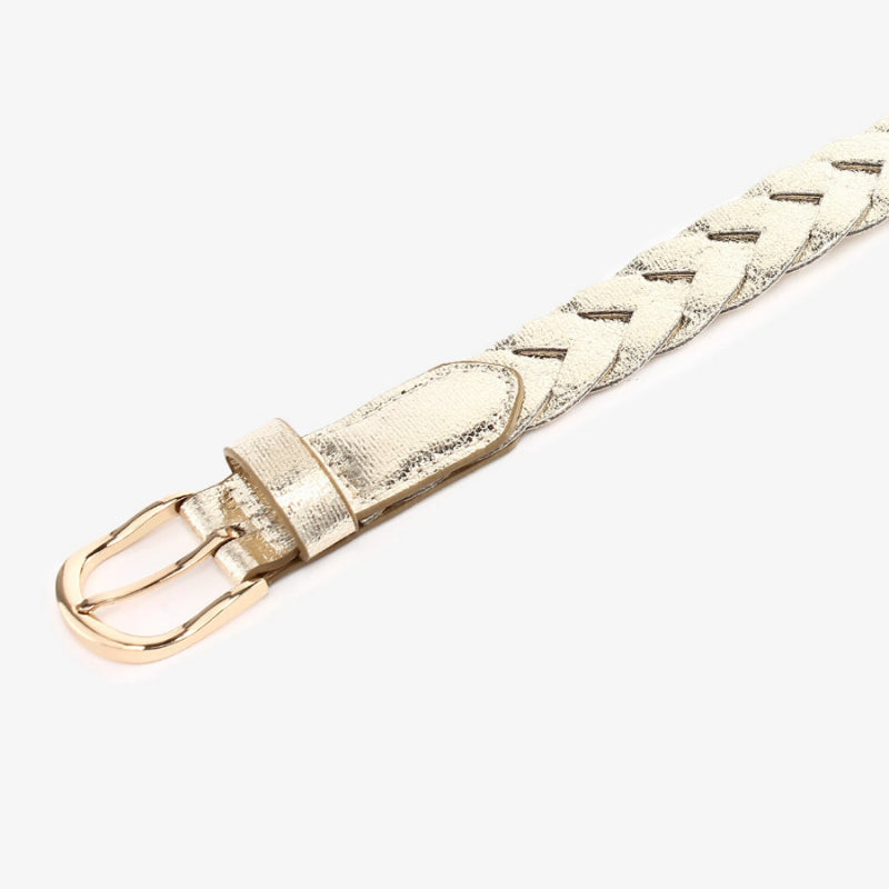 Shiny Metallic Braided Faux Leather Waist Belt for Women