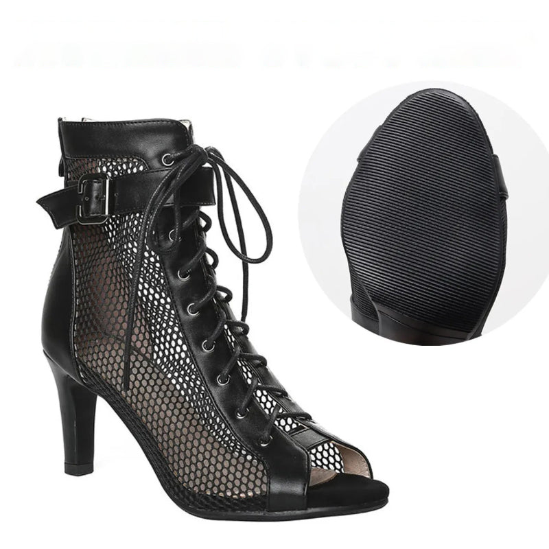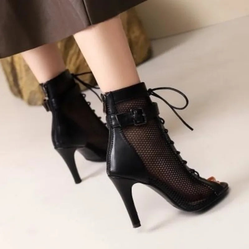 Sleek Lace-up Front Stiletto High Heel Mesh Boots for Women