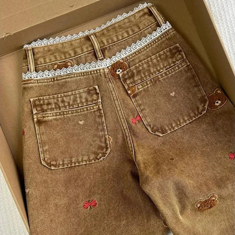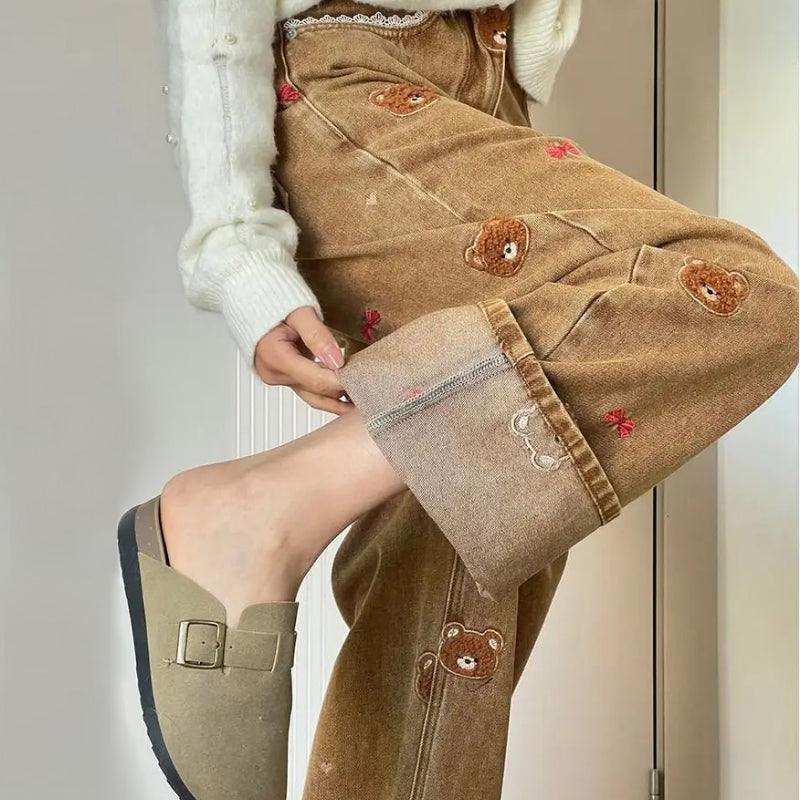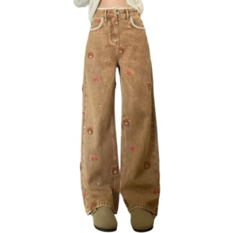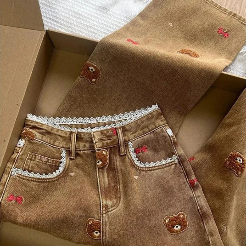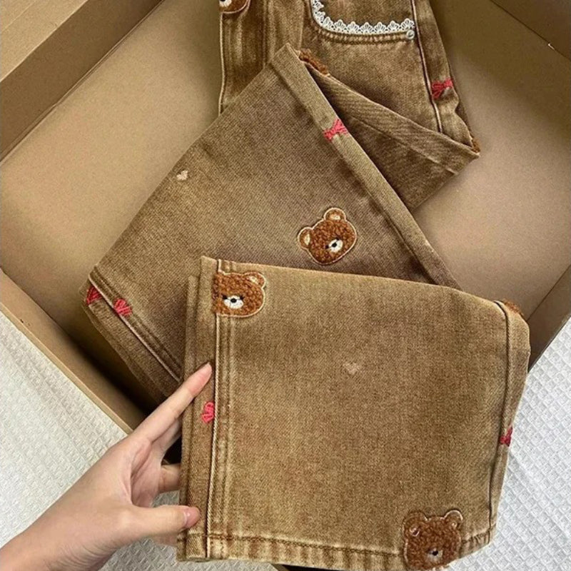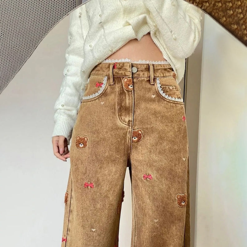 Are You Ready to Elevate Your Style with the Ultimate Teddy Bear Embroidered Patchwork Wide Leg Jeans?