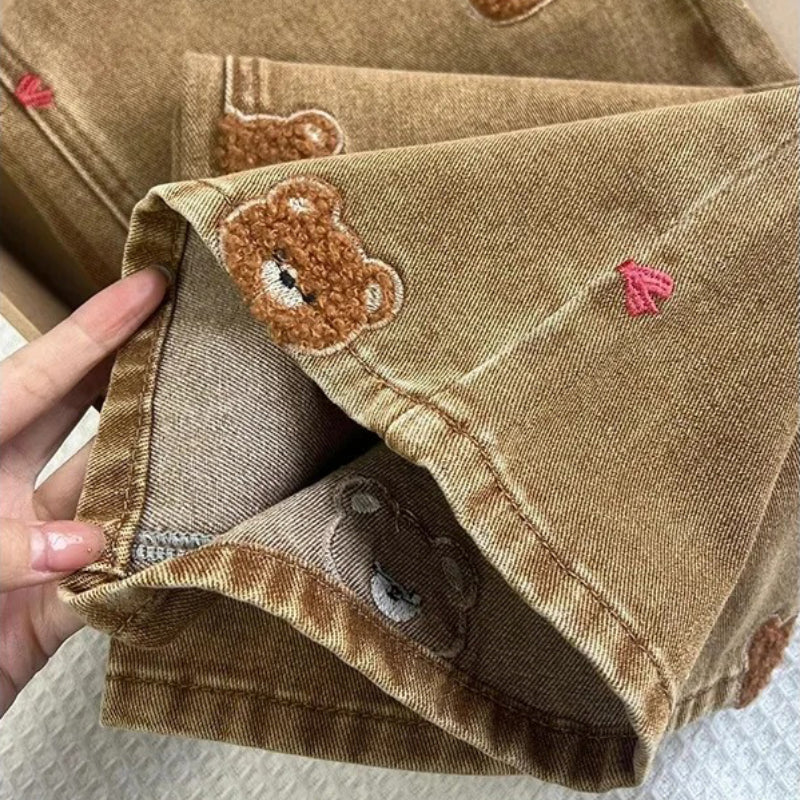 Step into a world of fun and fashion with these adorable yet trendy jeans that combine playful teddy bear embroidery with chic patchwork design. Perfect for making a statement wherever you go, these wide-leg jeans are a must-have for fashion-forward individuals who love comfort and creativity.