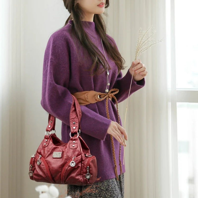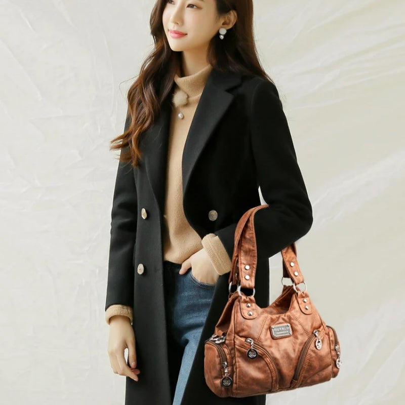 Urban Style Soft PU Leather Multiple Pockets Women's Shoulder Handbag