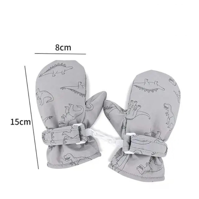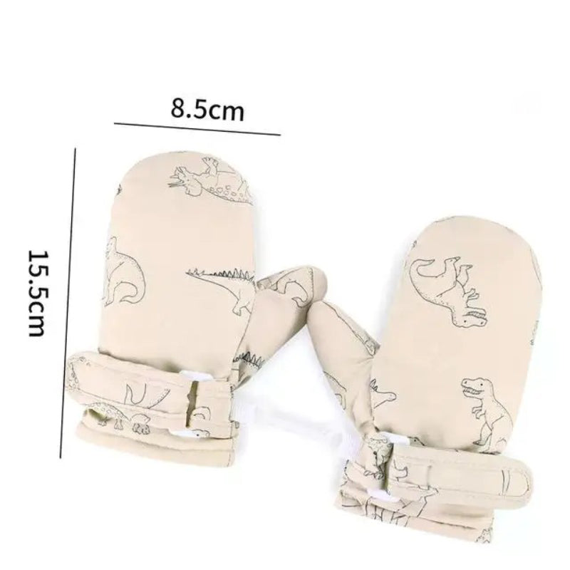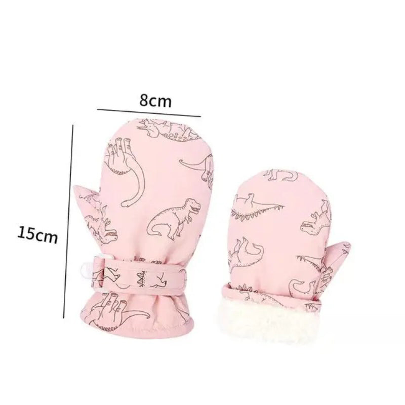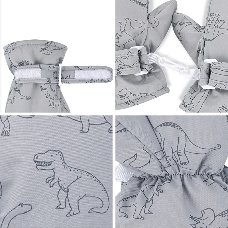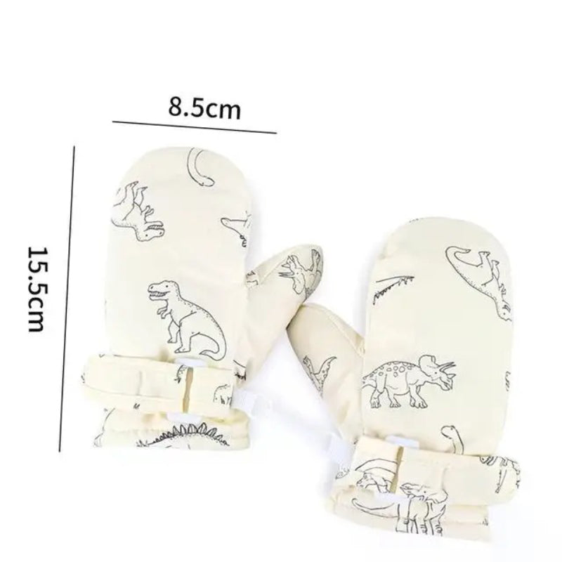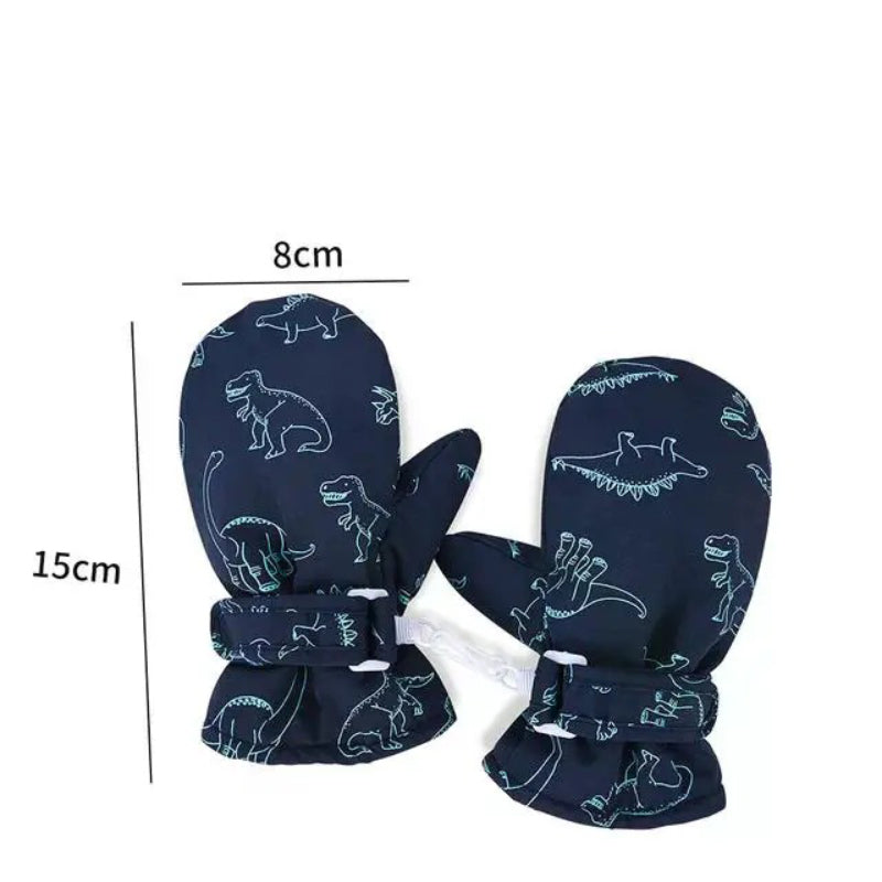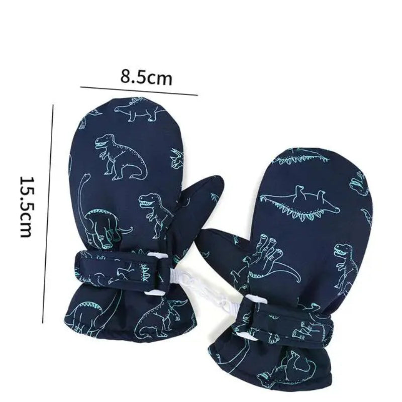 Winter Sports Gloves with Adorable Cartoon Dinosaur Patterns for Kids