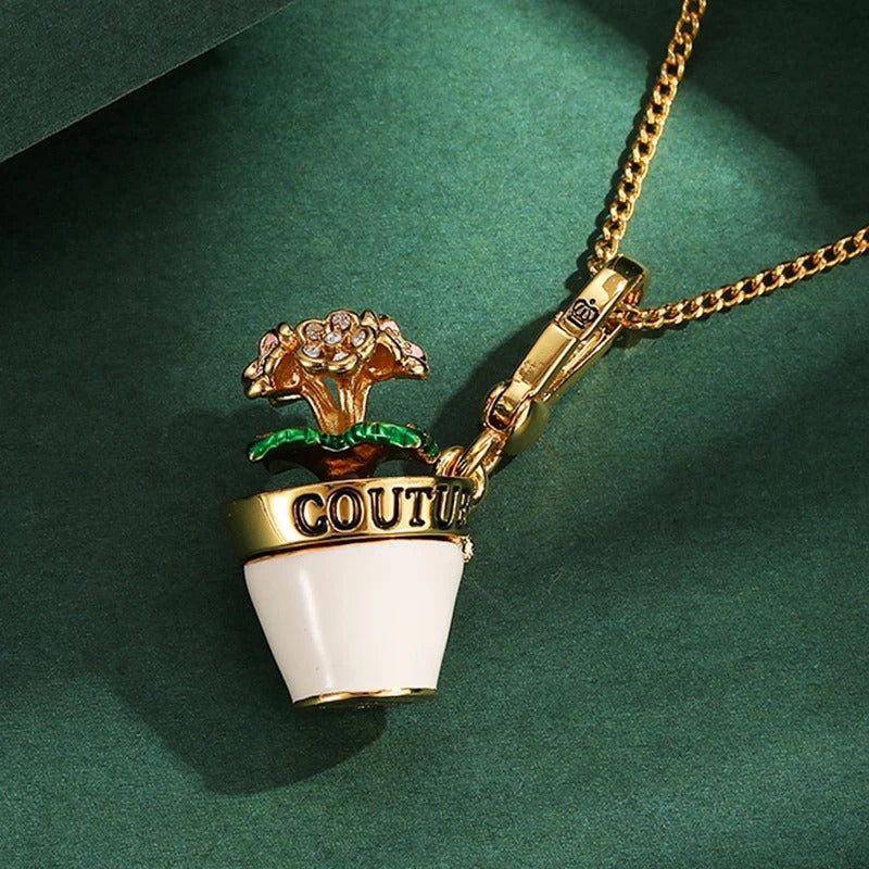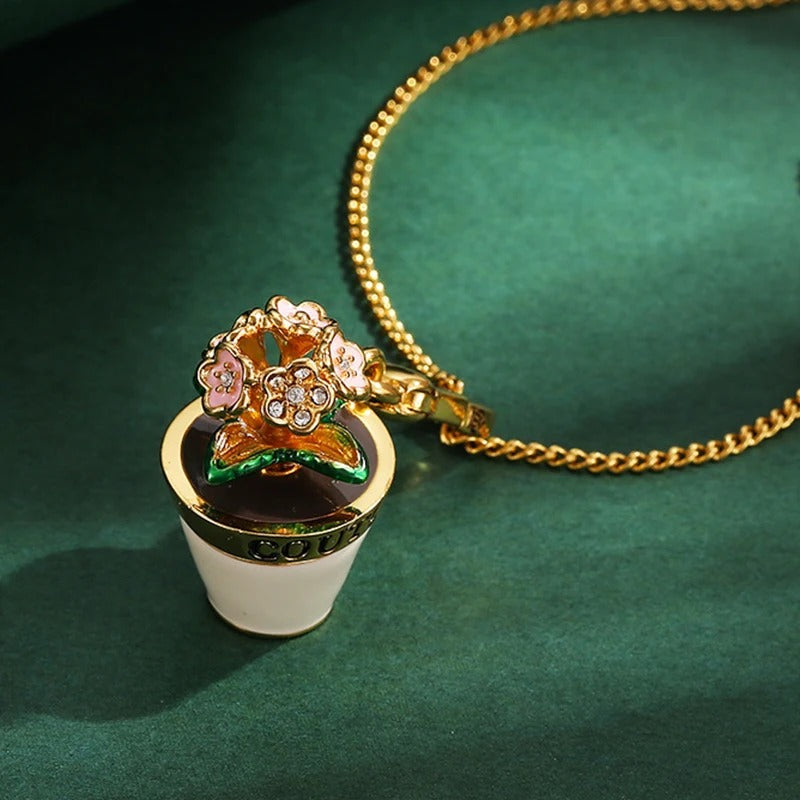 Ready to Bloom in Style? Unveil the Charm of the Women's Limited-edition Flower Pot Pendant Necklace with Rhinestones!