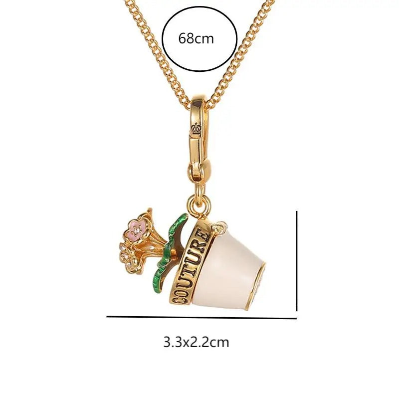 Women's Limited-edition Flower Pot Pendant Necklace with Rhinestones