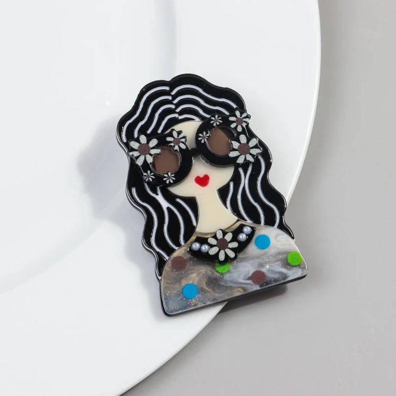 Women's Pop Art Style Floral Eyewear Fashion Brooch Pin