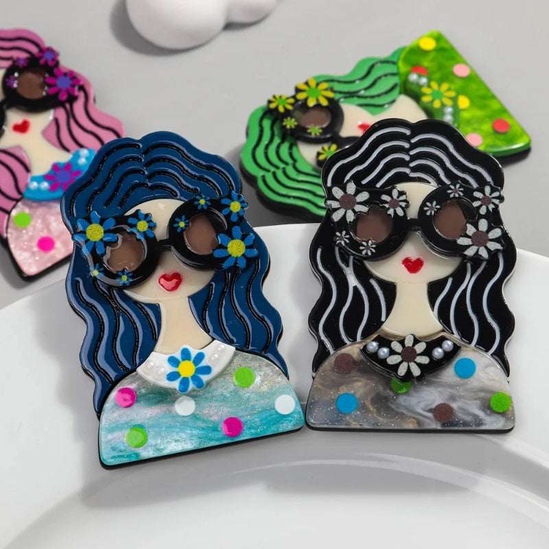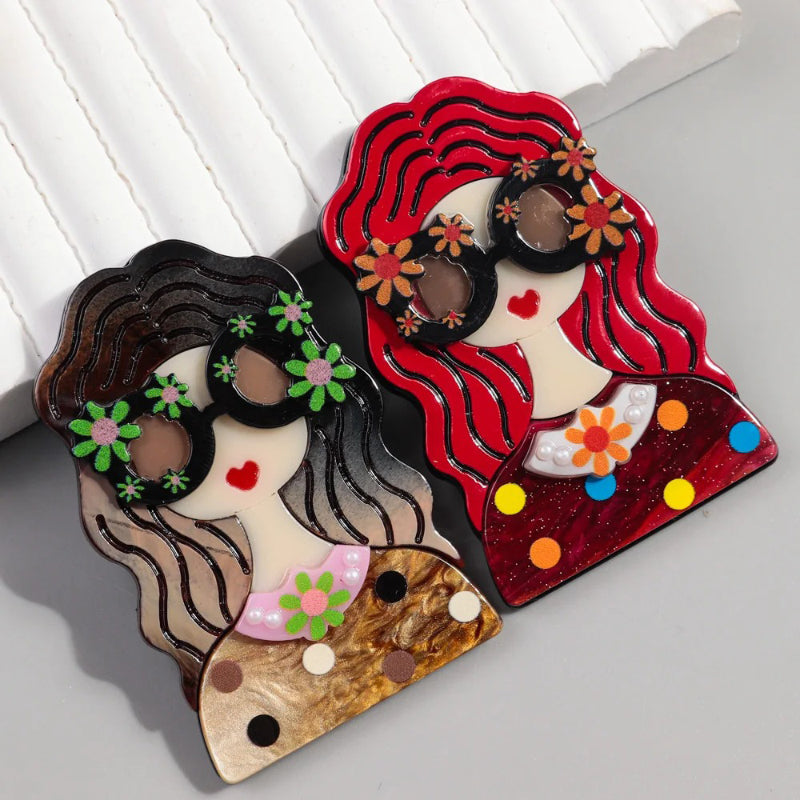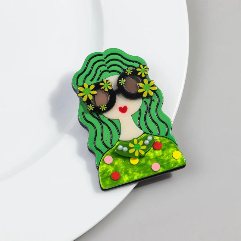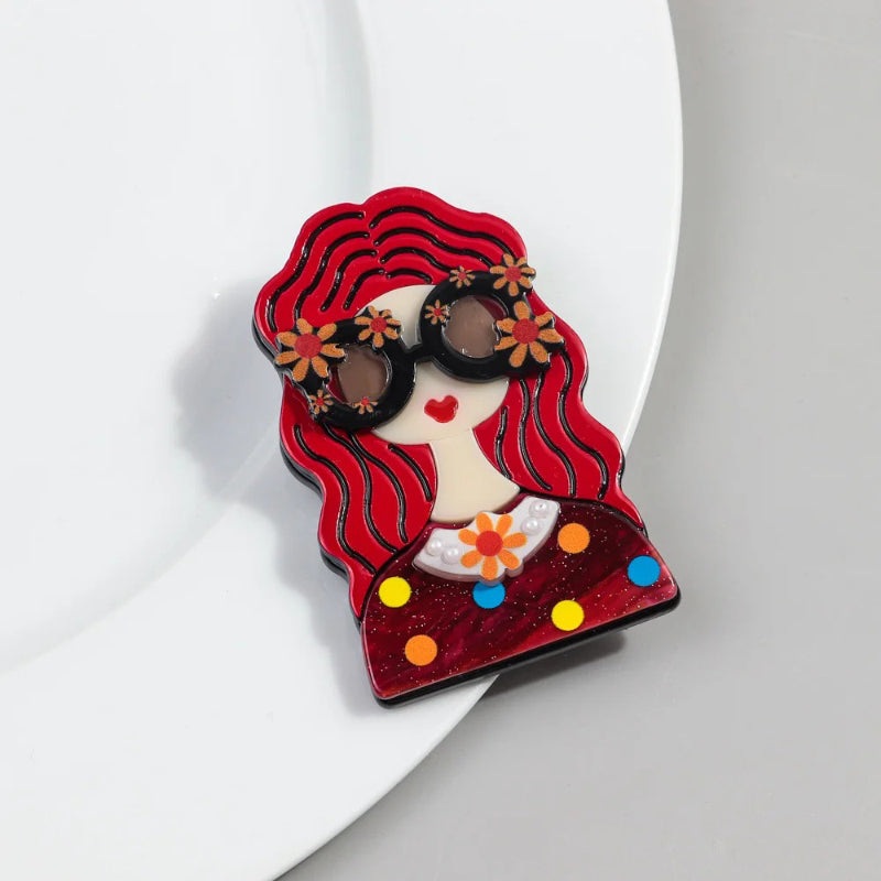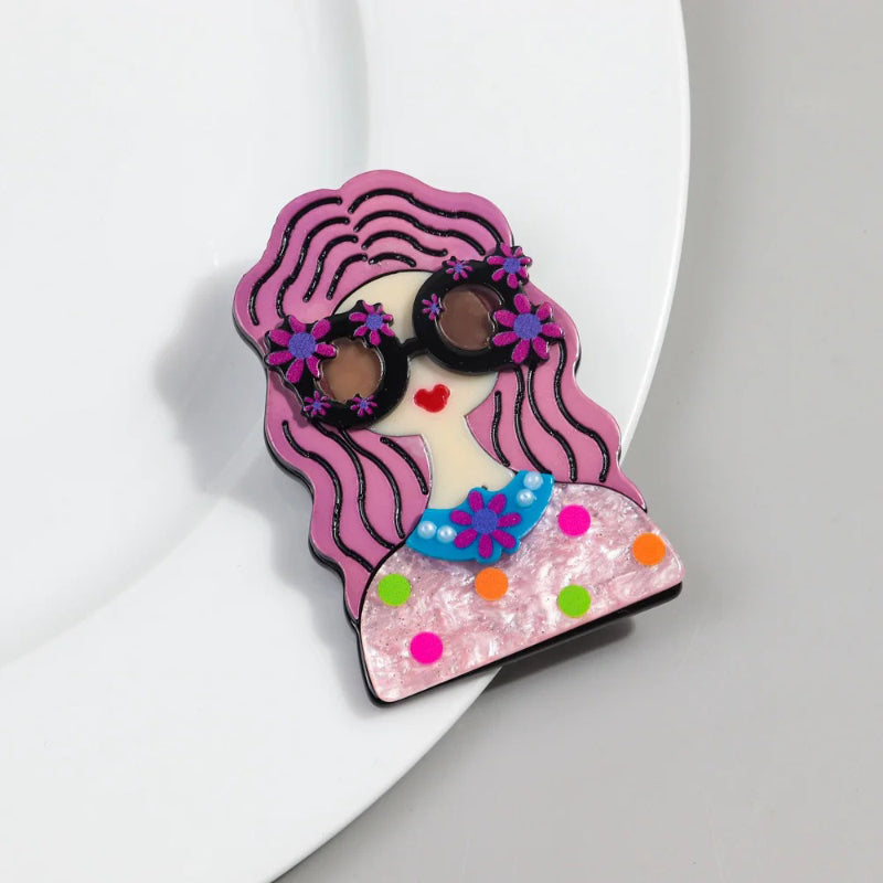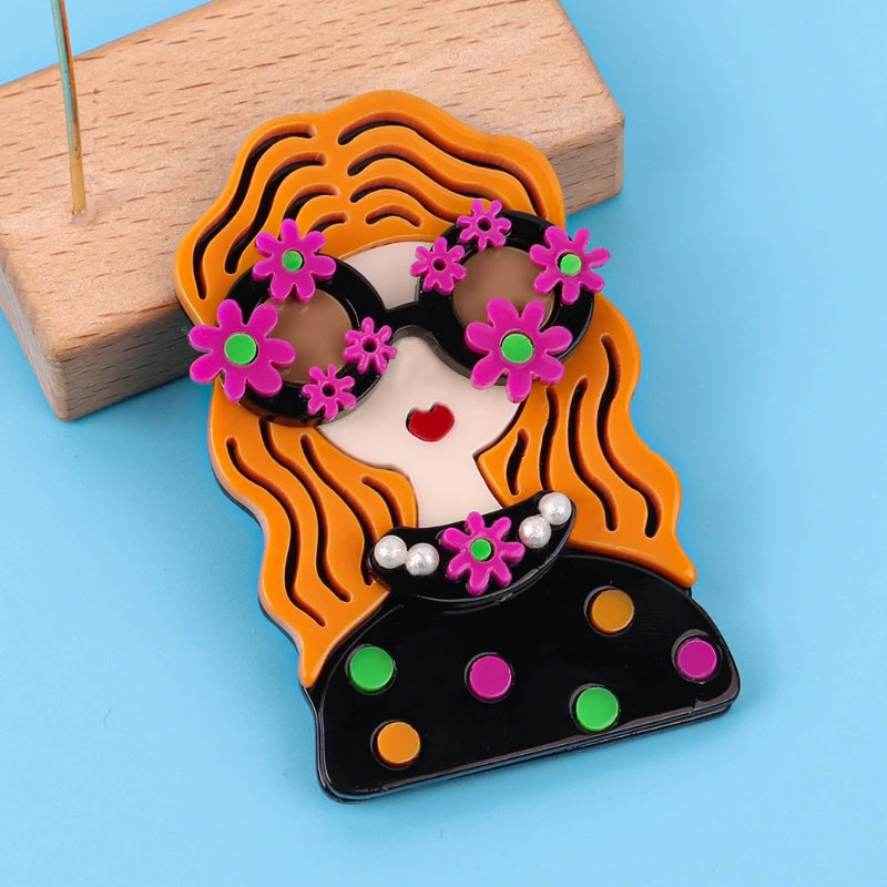 Make a bold statement with our Women's Pop Art Style Floral Eyewear Fashion Brooch Pin!