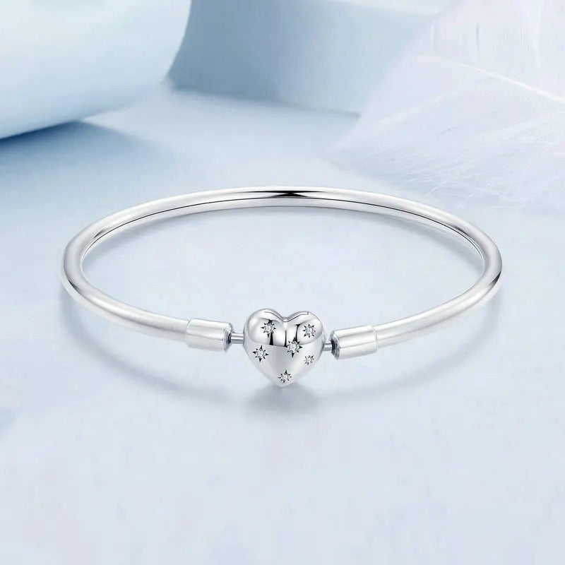 Step up your style game with our Zircon Heart Charm in Sterling Silver Smooth Surface Bracelets! These adorable bangles are perfect for stacking, layering, or wearing alone to make a sweet statement. Crafted with shiny sterling silver and charming heart accents, they’re your new go-to accessory for any occasion.