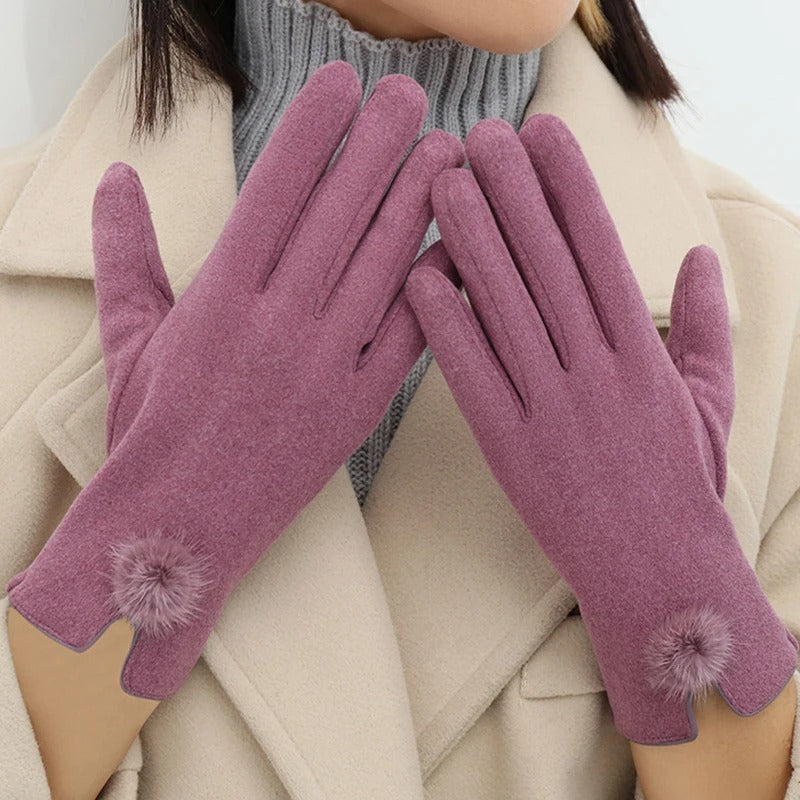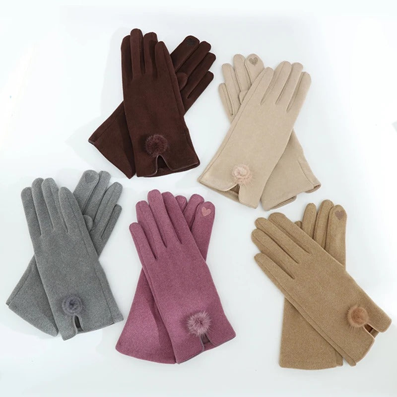 Chic Fitted Touchscreen Winter Gloves with Stylish Pom Poms