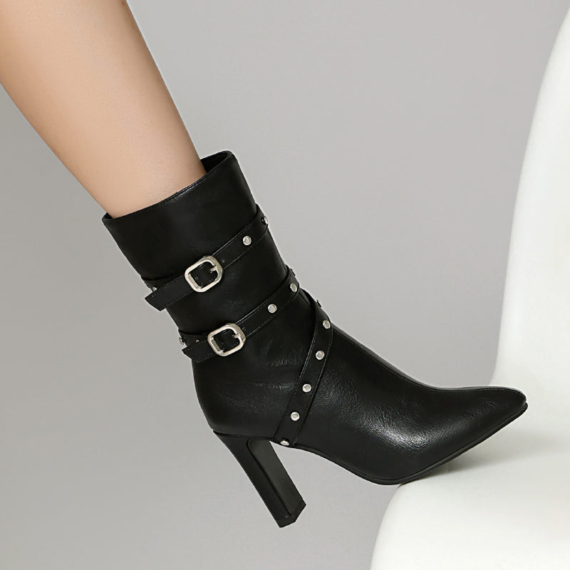 Rivet Studded Cross Strap Pointed Toe Women's Boots