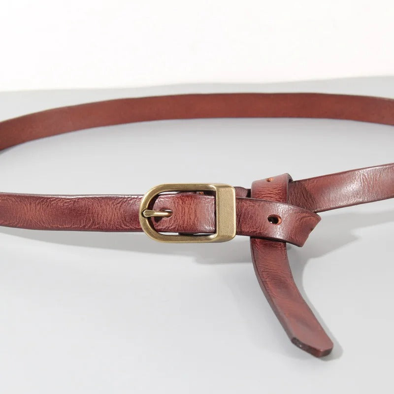 Women's Narrow Cowhide Belt with Retro Vintage Appeal
