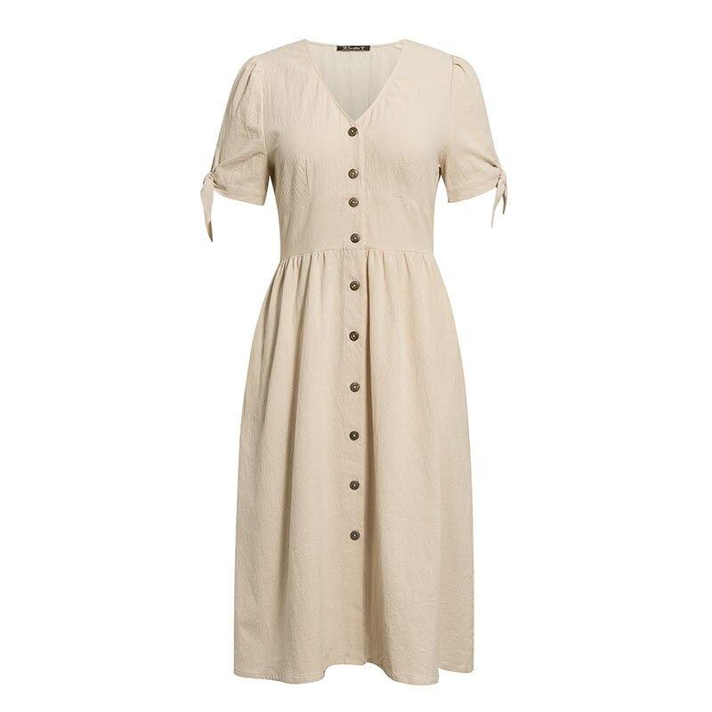This Sophisticated V-neck Button Up Puff Sleeve Dress is the perfect addition to your new-season collection! It'll absolutely look picture perfect!
