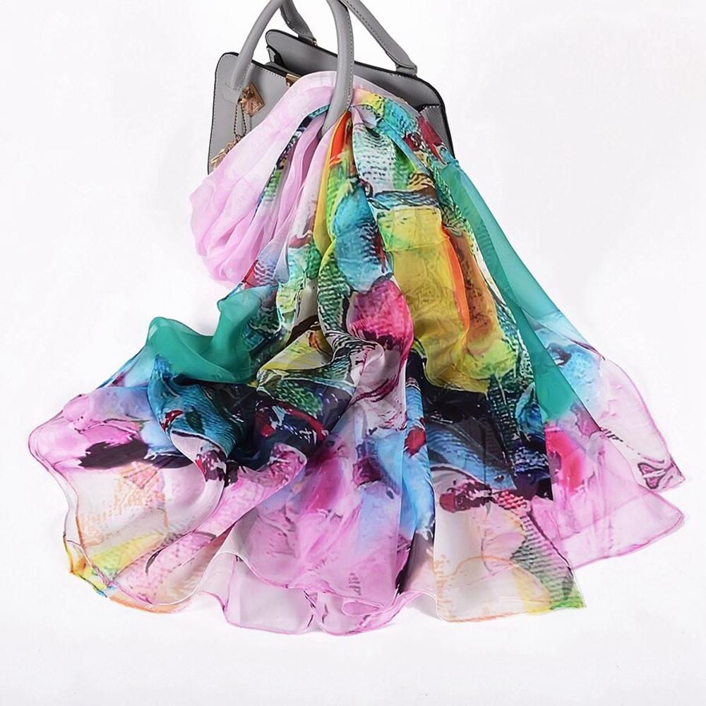Luxurious Pure Silk Vibrant Floral Long Scarves